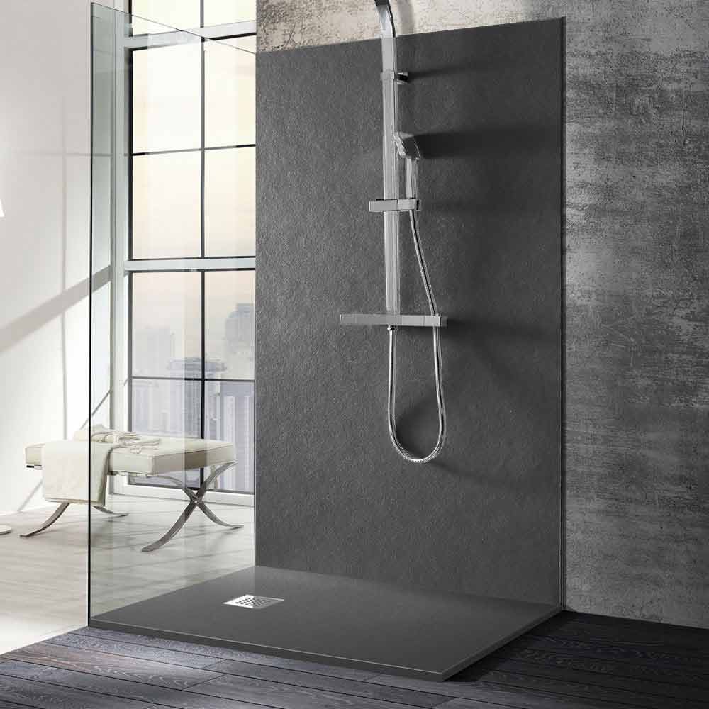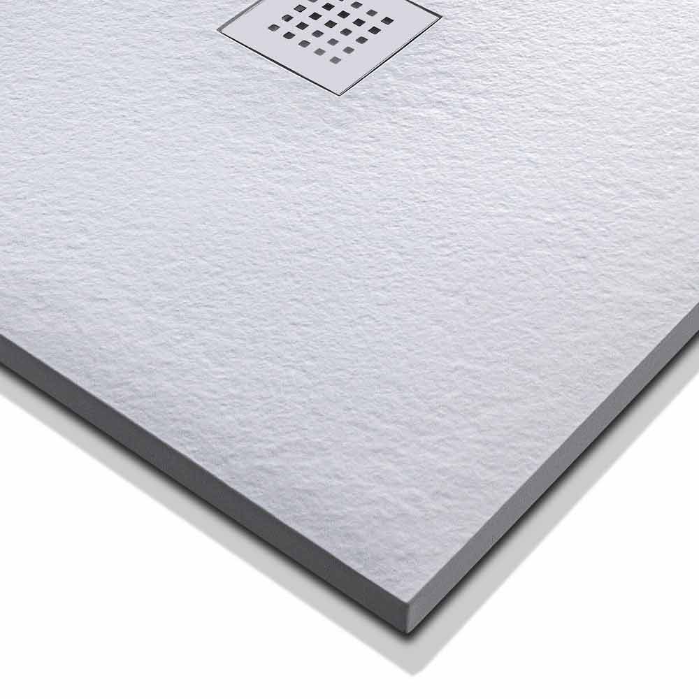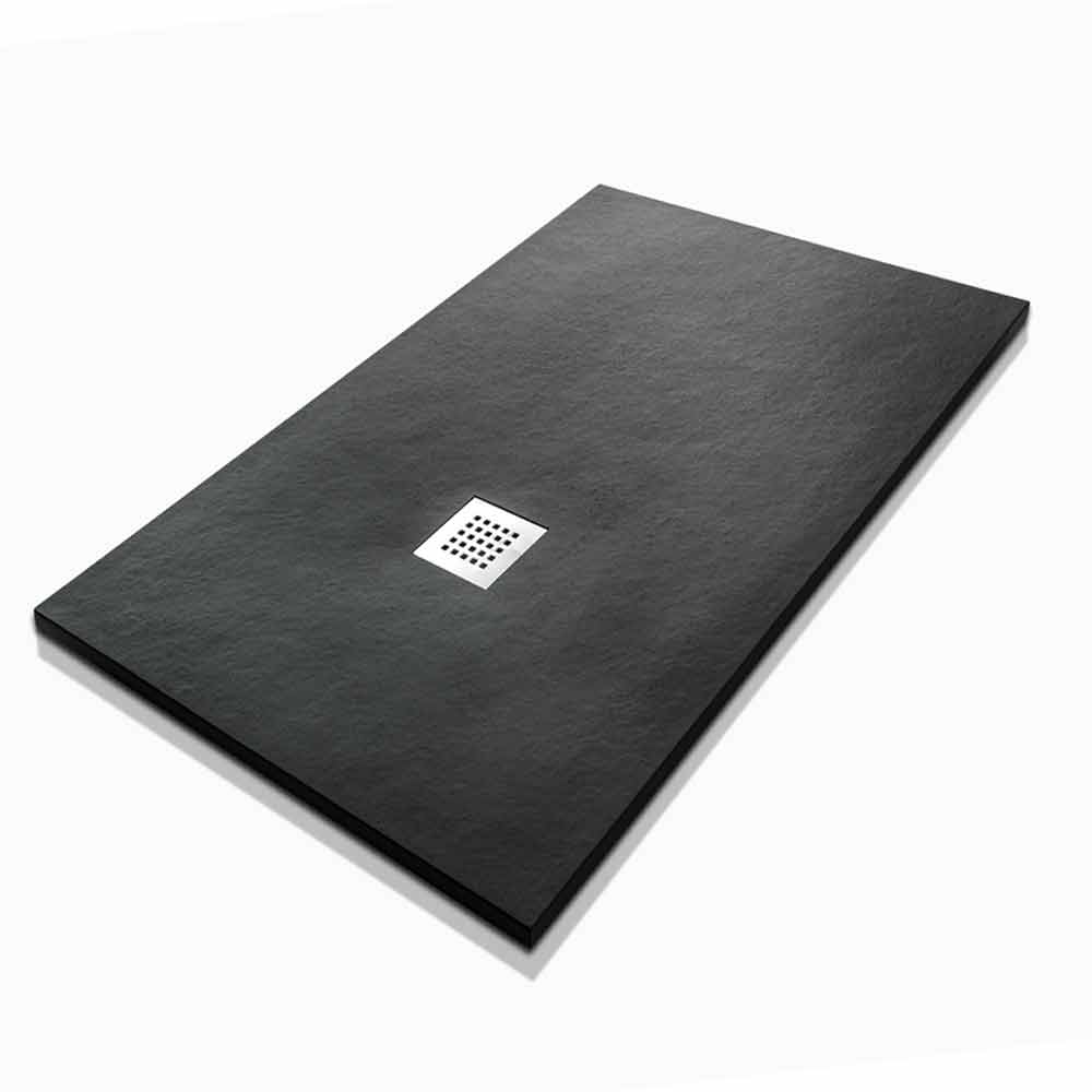Moderne brusebad 140x80 i harpiks med finish i sten og stål.
