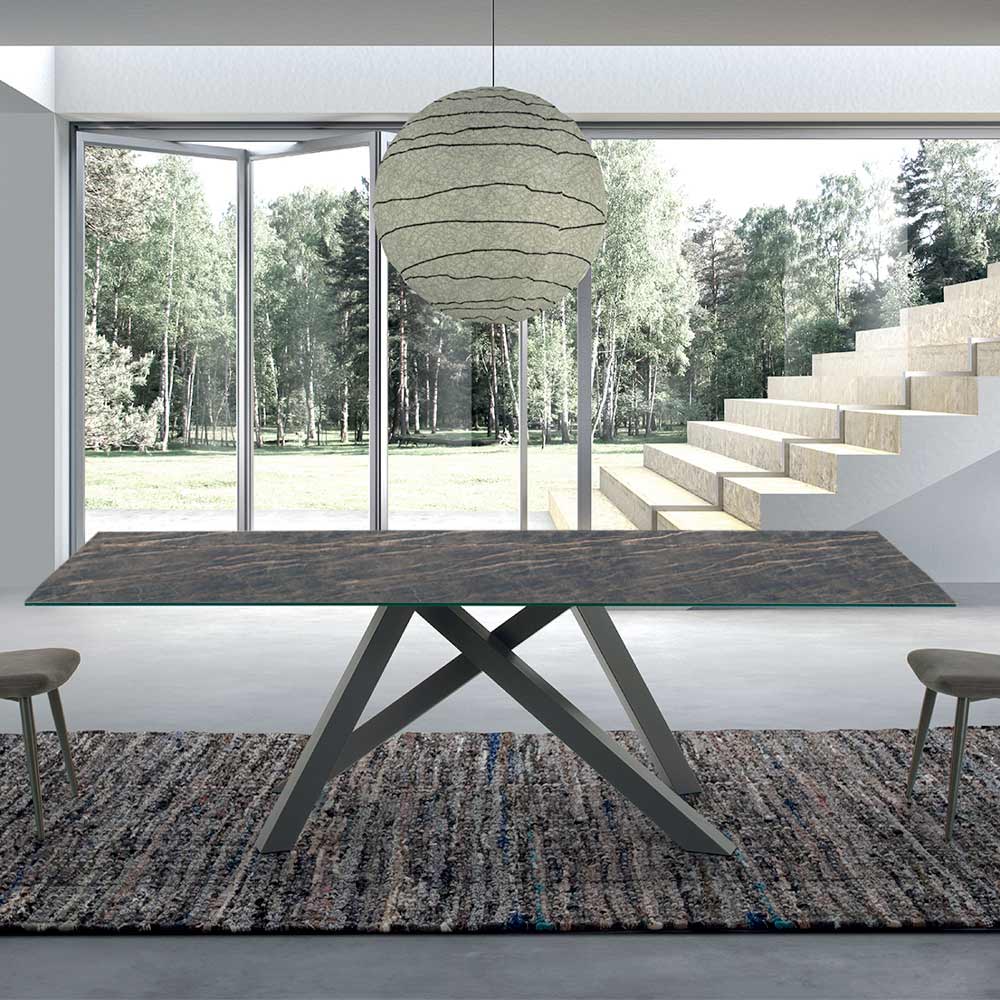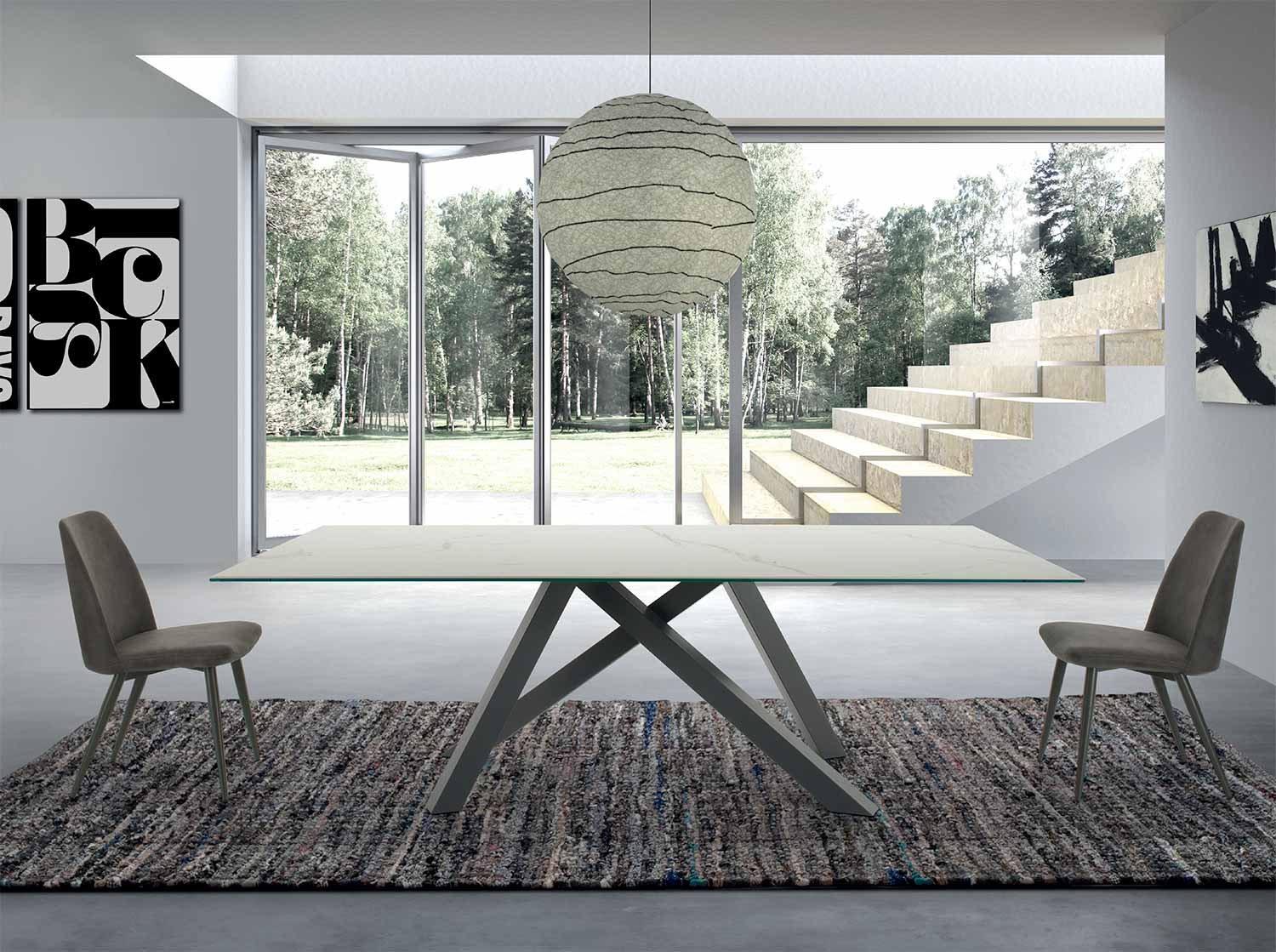 Bord med keramisk plade og duegrå stålbund af moderne design fremstillet i Italien.