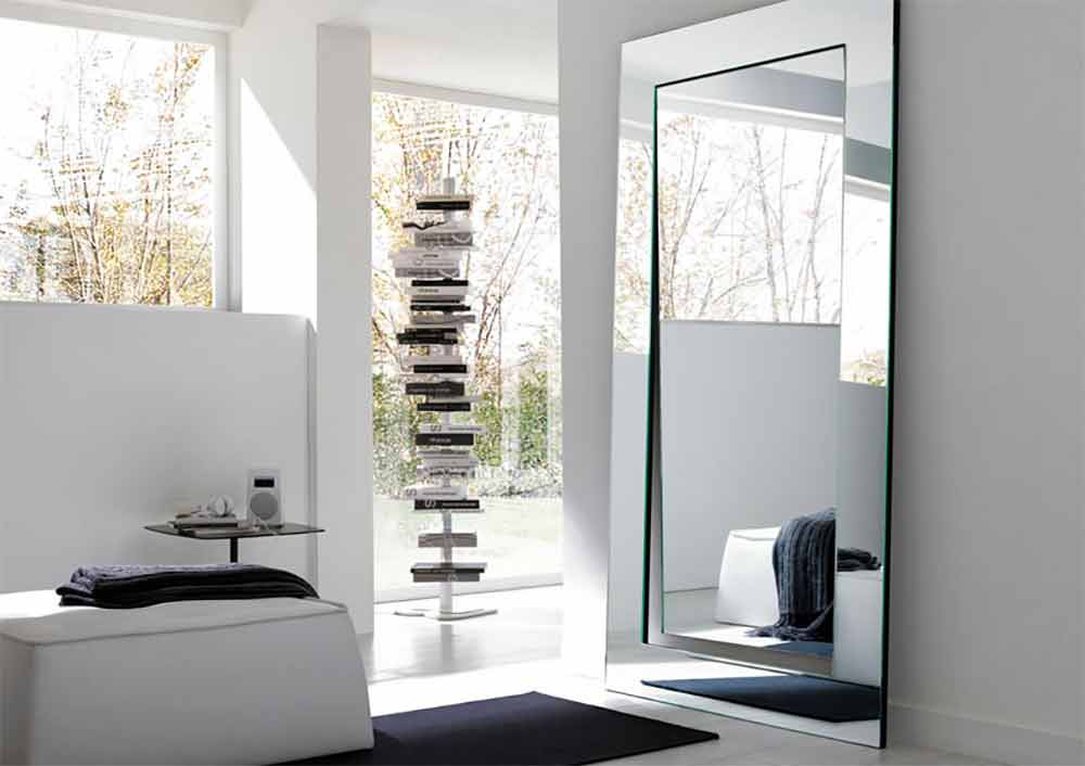 Moderne design rektangulært fritstående spejl med skrå ramme, realiseret i Italien for hånd.