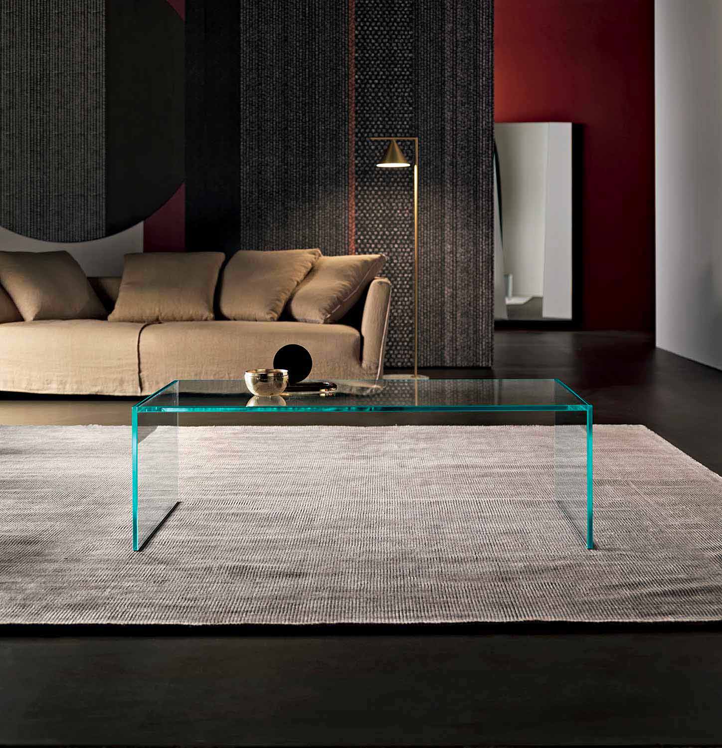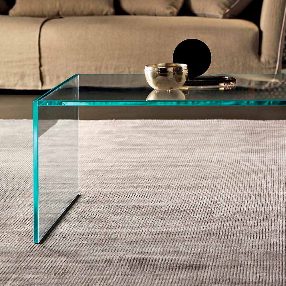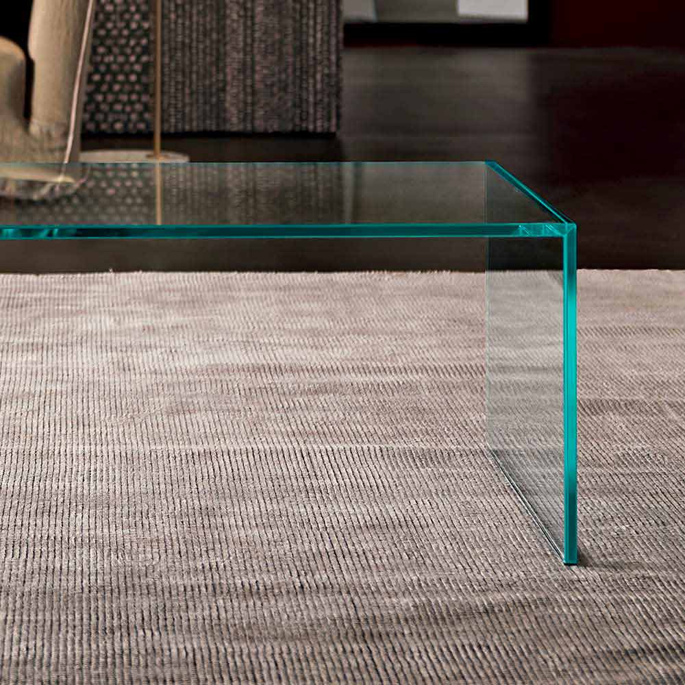Rektangulært sofabord i moderne design i ekstra klart glas, håndlavet i Italien.