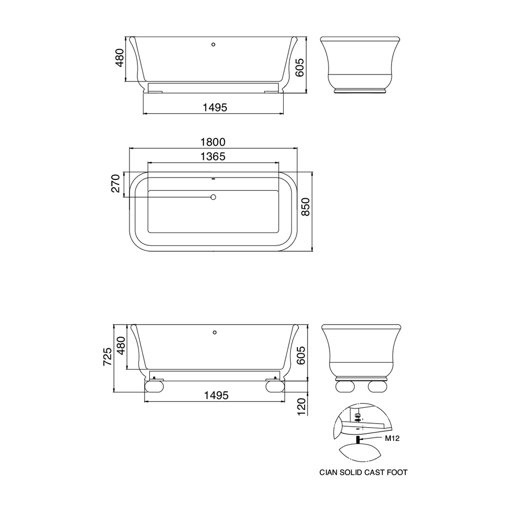 NB: Vandhanerne, sifonen og tilbehøret er ikke inkluderet i prisen. Hvis du ønsker at købe dem eller tilpasse dit badekar med hensyn til finish og størrelser, så tøv ikke med at kontakte os ved at bruge den relevante formular " Anmod om information ".