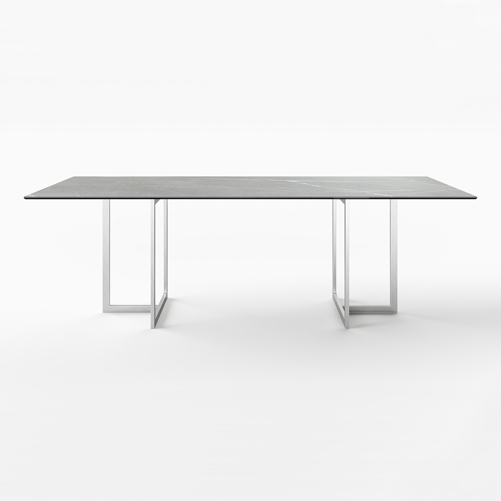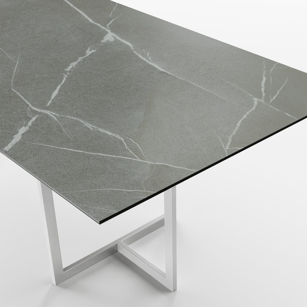 Spisebord i stentøj af stentøj af porcelæn og rustfrit stål Made in Italy.