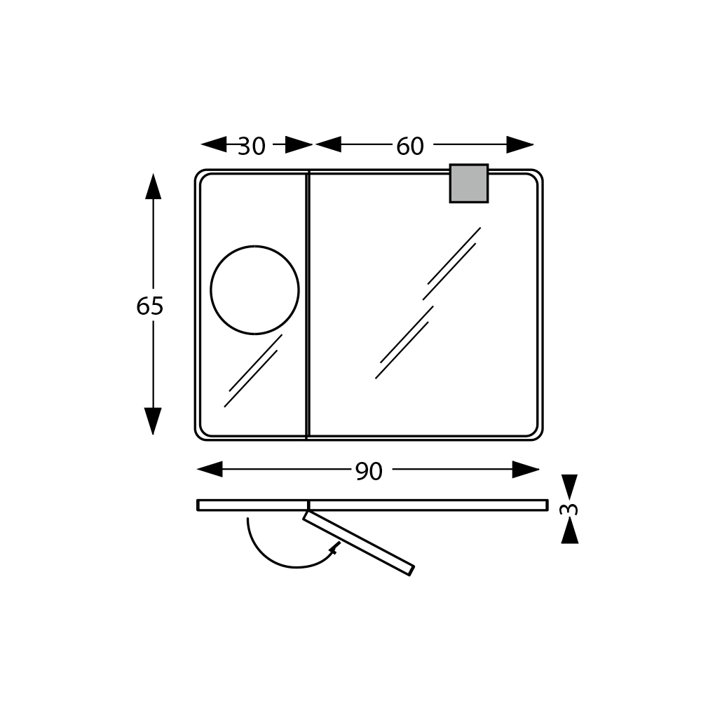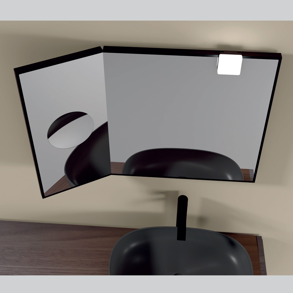 Trærammen , udvalgt for sin kvalitet og skønhed, tilføjer et strejf af naturlig varme til objektets overordnede elegance, mens den bevægelige del åbnes med et forstørrelsesspejl , en genial funktion, der tilbyder praktisk og avanceret funktionalitet .