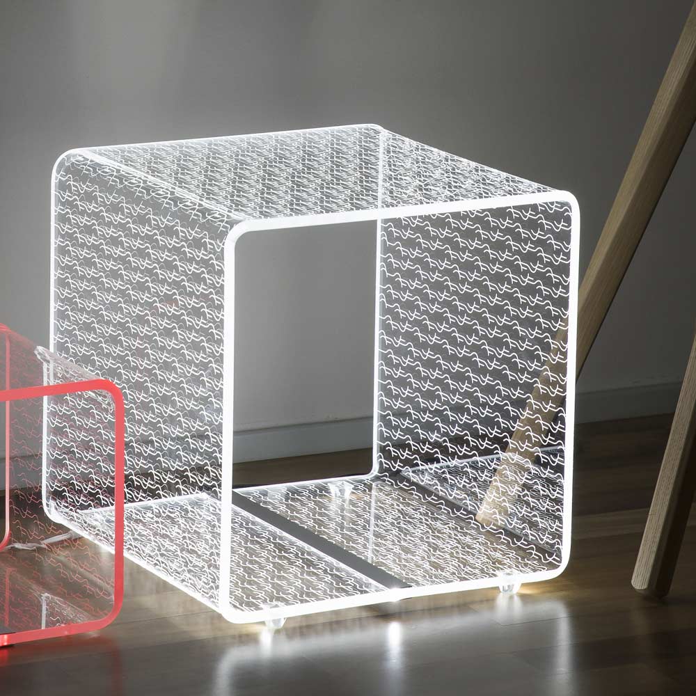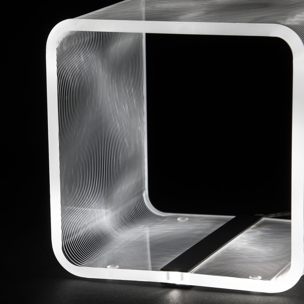 Firkantet RGB led bordlampe i transparent akryl 2 varianter lavet i Italien.