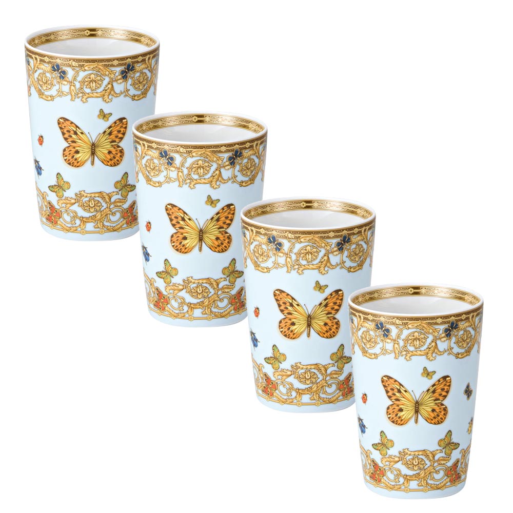 Dette Le Jardin de Versace- glas, lavet af raffineret porcelæn , er en ode til skønhed og elegance. Dekoreret med et barok blomstermotiv og udsmykket med farvestrålende sommerfugle , er det perfekt inkarneret den umiskendelige stil i Maison Versace. Den sarte blå baggrundstone, kombineret med de gyldne detaljer , skaber en kombination af luksus og friskhed, ideel til at berige ethvert bord med et strejf af klasse.