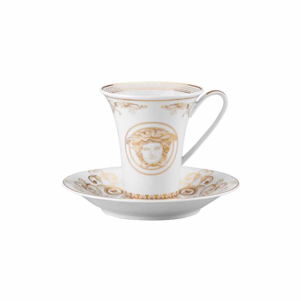 Den fantastiske og designer høje kaffekop inklusive underkop fra Versace er en del af den raffinerede og luksuriøse Medusa Gala bordkollektion.