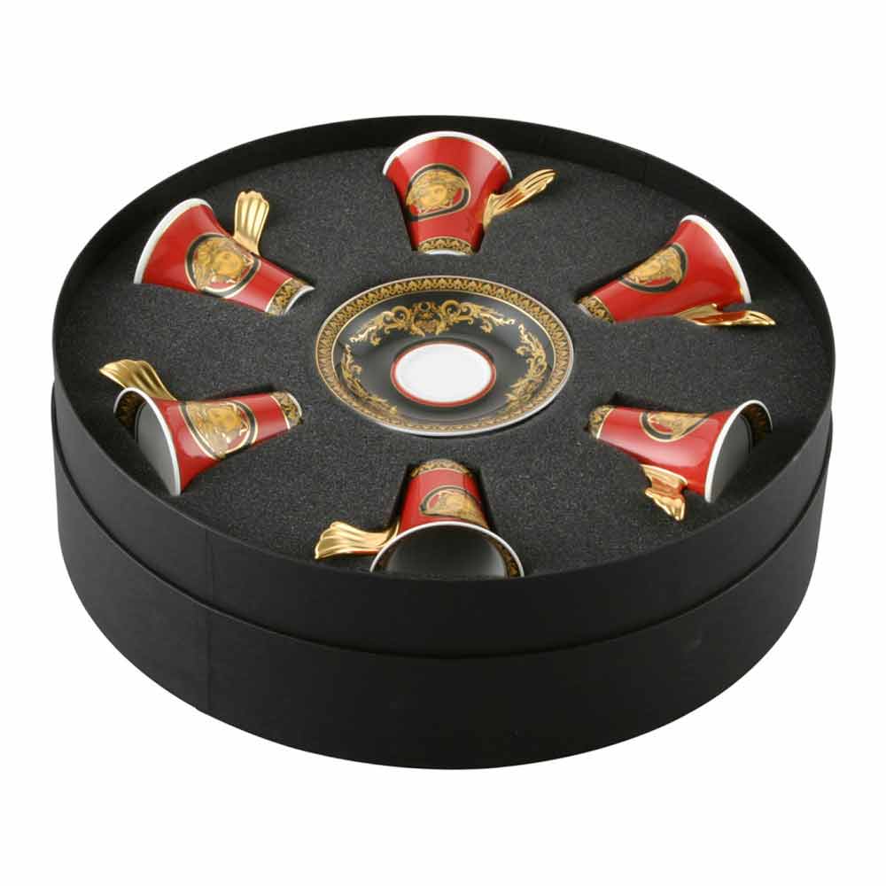 Sæt med 6 espressokopper i Versace Medusa Red porcelæn
