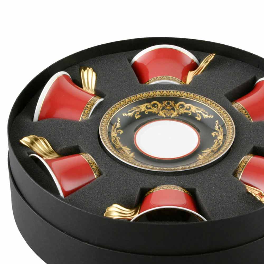 Versace Medusa rødt porcelæn 6-delt tekopsæt