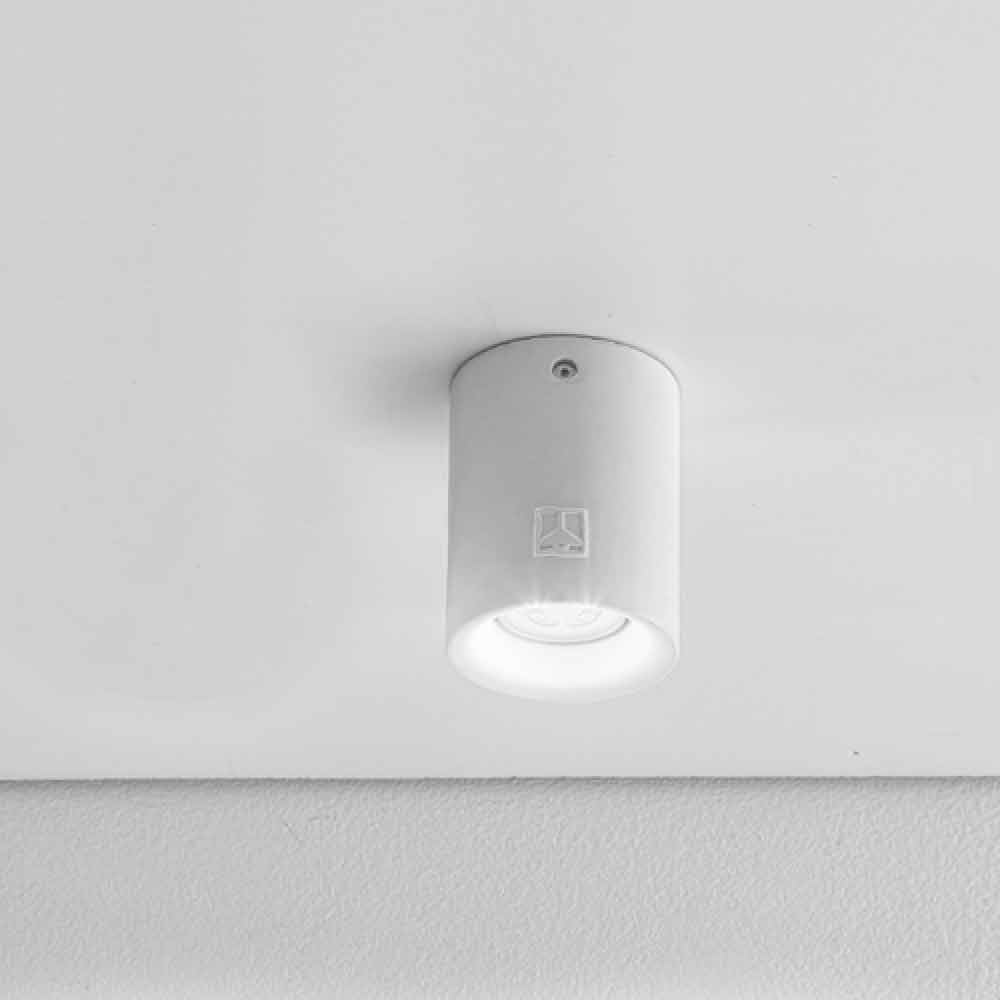 Moderne rund formet udendørsloftslampe Nadir 10 fra Aldo Bernardi , fås i beton- eller gipsversion.