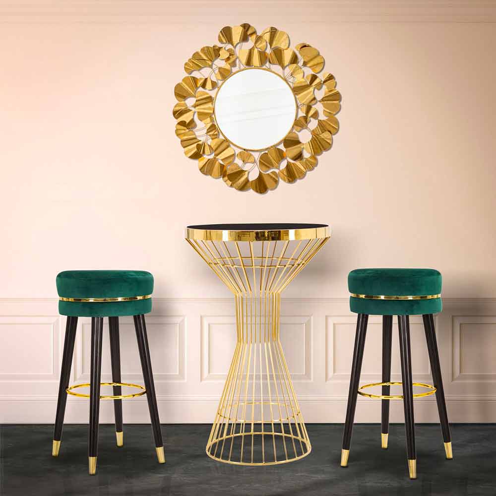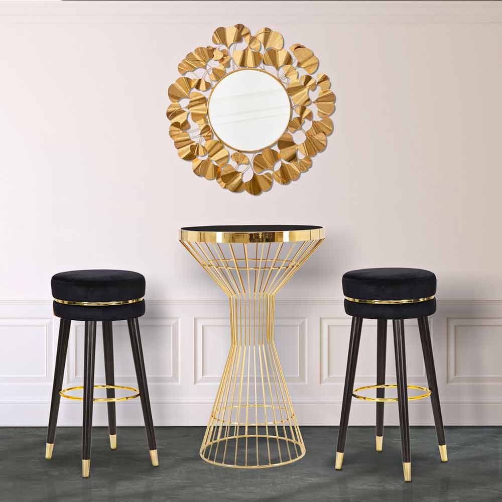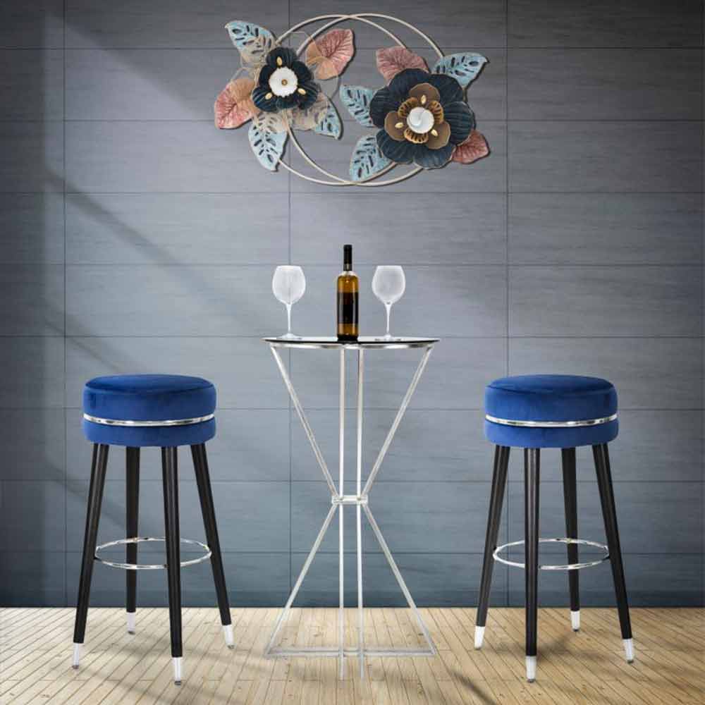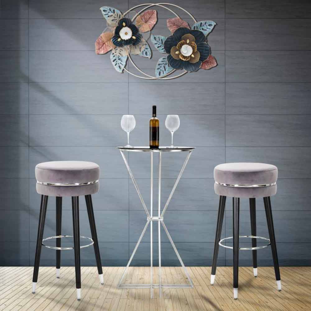 Moderne stil rund barstol Ø 35 cm i træ og stof.
