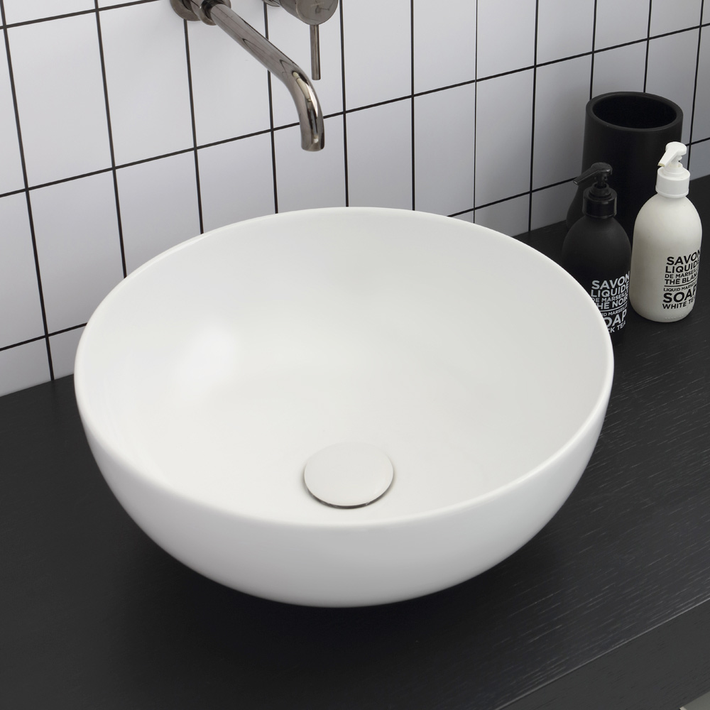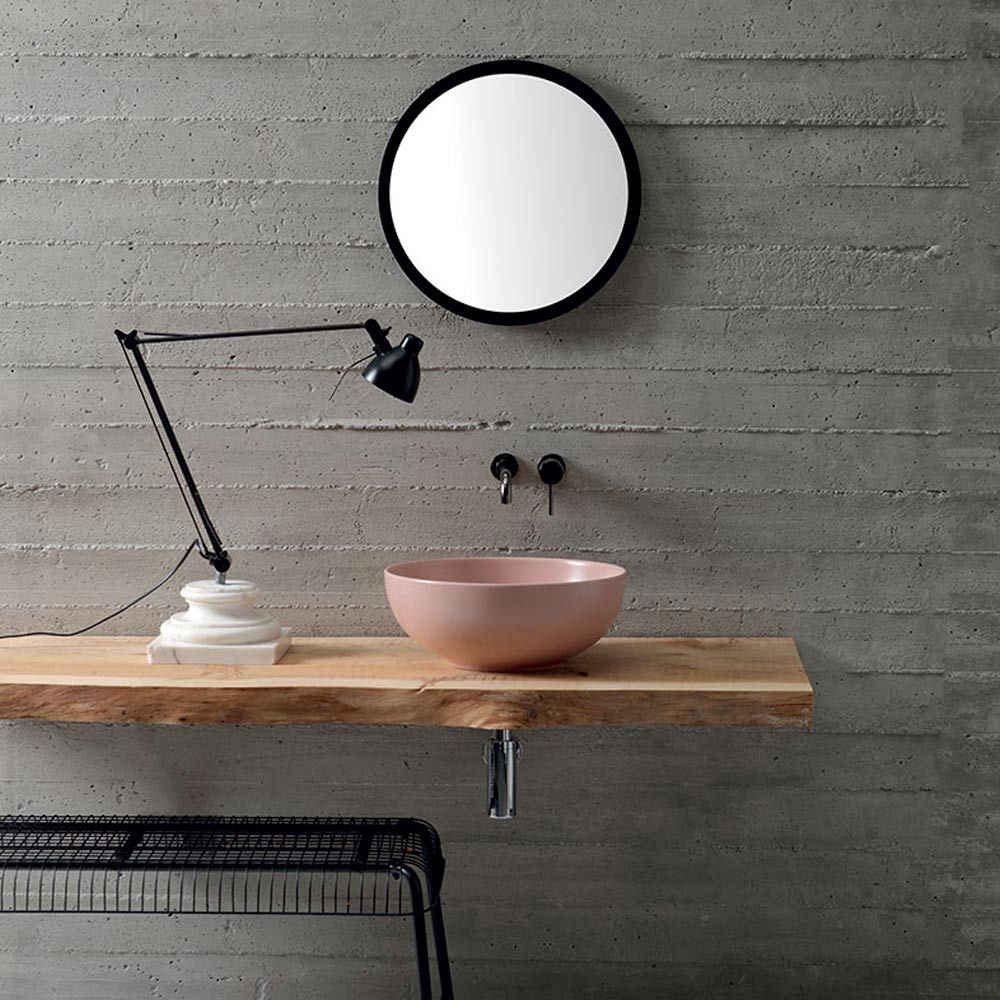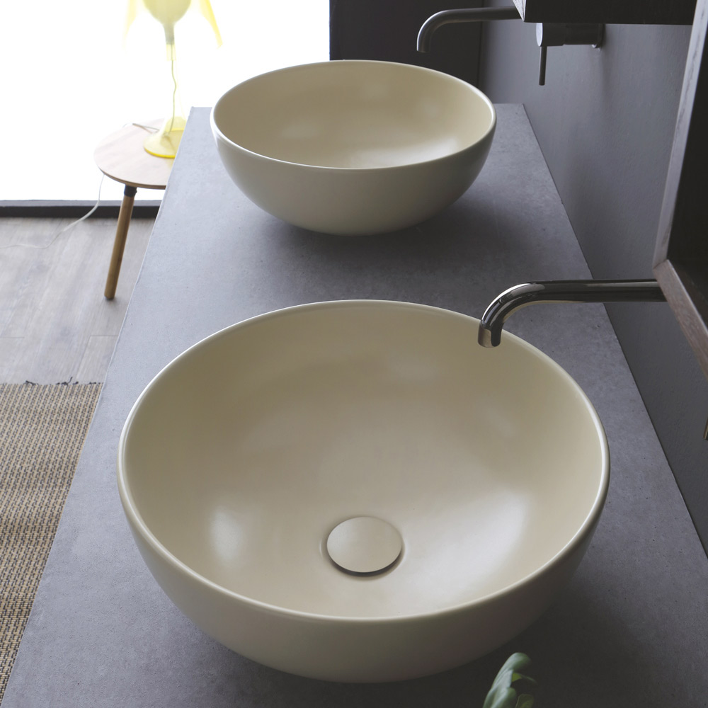 Rund bordplade håndvask lavet af farvet keramik med en mat finish gennem 100% Made in Italy håndværk . Enkelhed og alsidighed forenes for at give liv til dette vidunderlige møbel med en minimal og raffineret stil designet til at fuldende ethvert moderne badeværelsesområde, hvilket bringer et strejf af personlighed og elegance med sig.