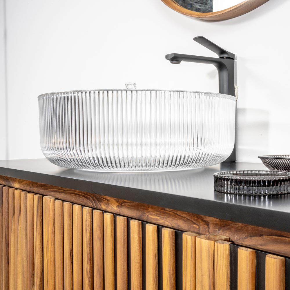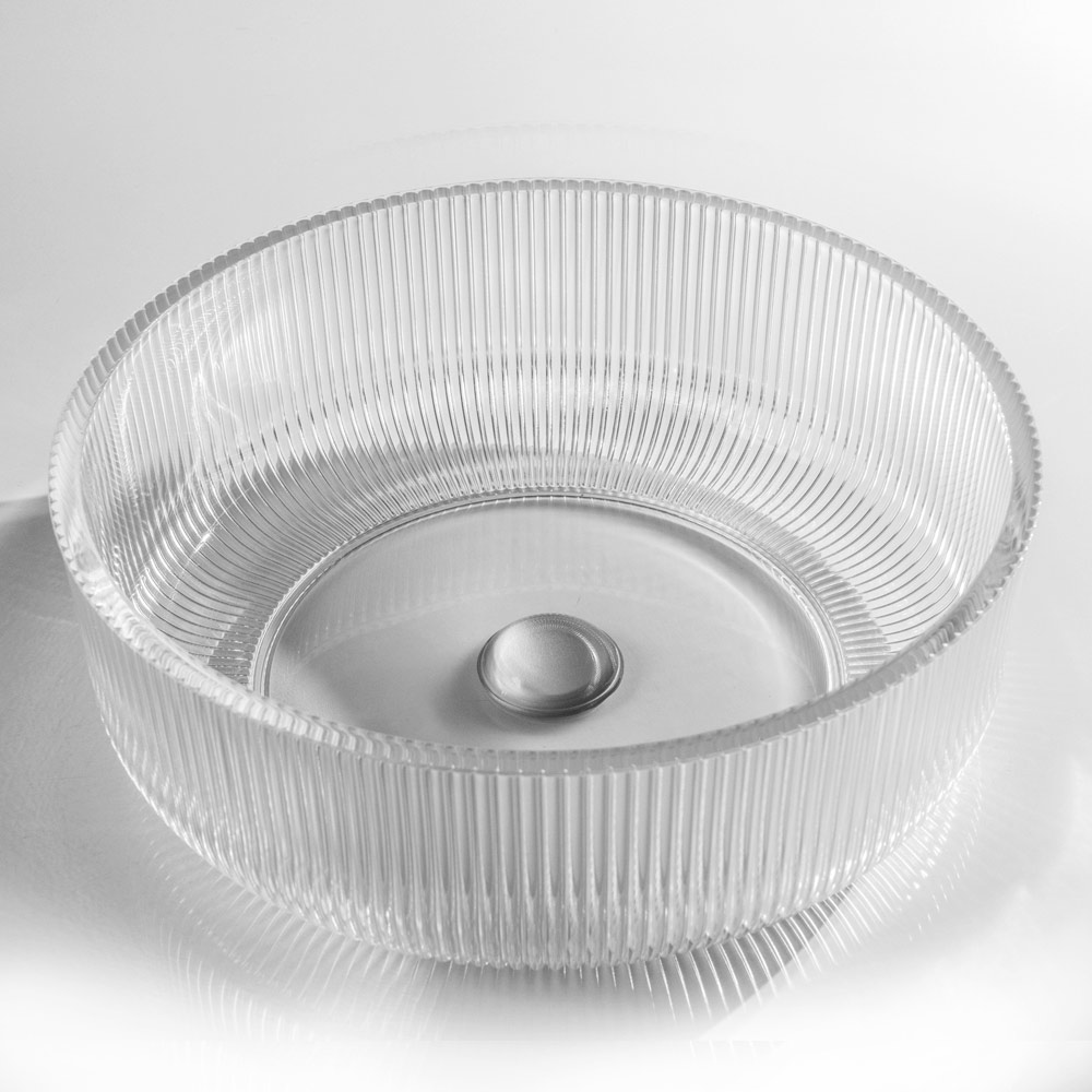 Vaskene er testet med et specielt instrument for at kontrollere for ufuldkommenheder og/eller eventuelle resterende spændinger i glasset. Mikrobobler eller mikrourenheder skal ikke betragtes som defekter, men som bevis på produktets håndværk. Håndlavet dekoreret håndvask i blæst glas.