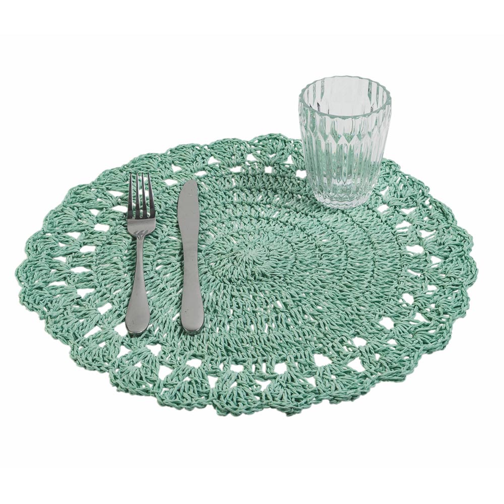 Dækkeservietter i TNT hæklet broderi i forskellige farver 12 stk.