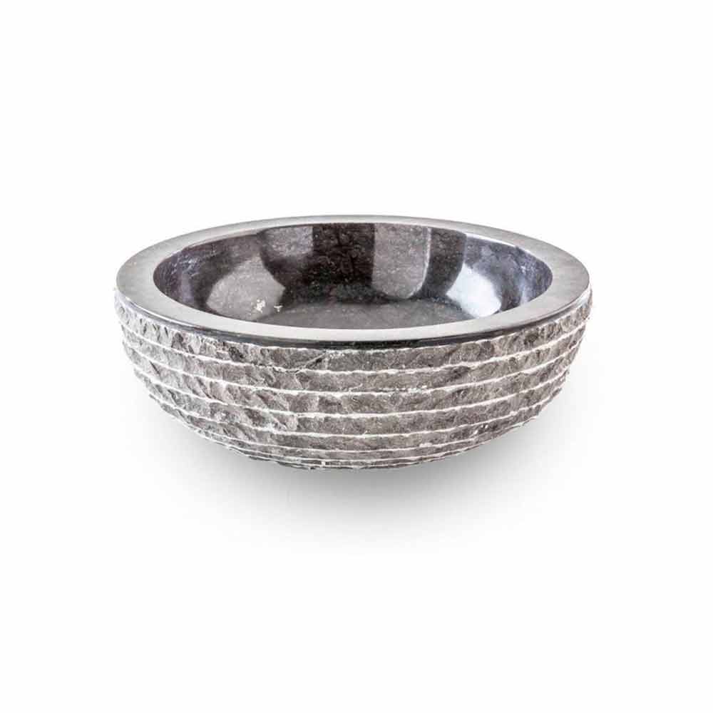 Håndlavet vask i marmor fra stenbruddene syd for Mount Merapi. Poleret indvendigt og på overkanten er den rå og bearbejdet med fræser og mejsel på ydersiden. Materien viser sig selv og lader sig røre for, hvordan den er, og hvordan den kan blive!