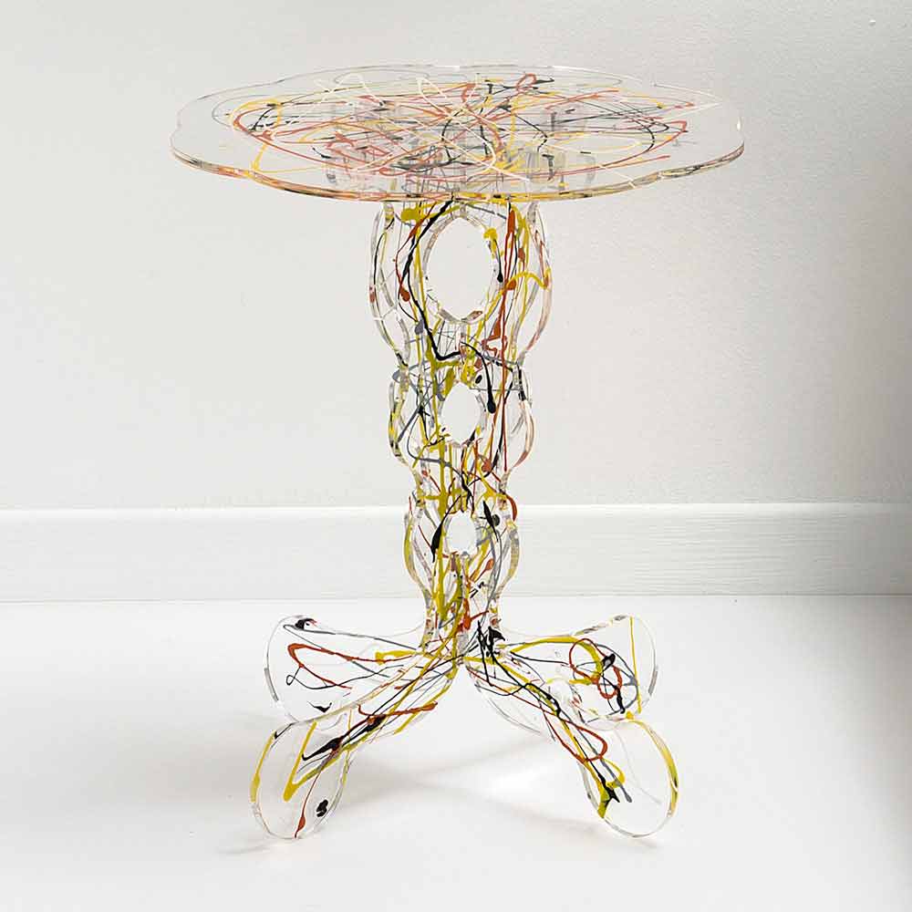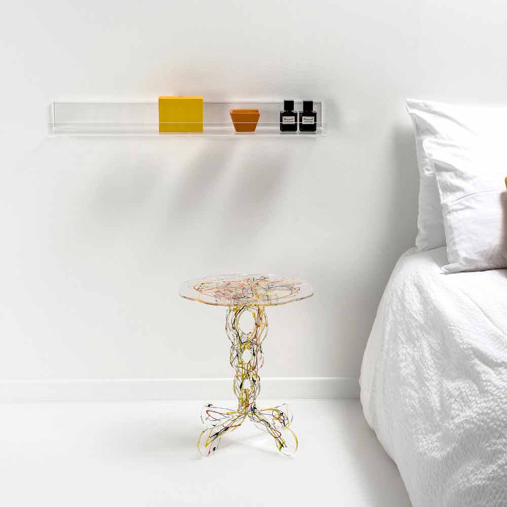 Kugler Moreschi for den excentriske bord Janis, anvendelige som et sofabord, som et natbord eller som et bord udendørs. Basen i gennemsigtig plexiglas laserskåret gør det diskret, mens håndværket spraymaling i hyldest til Jackson Pollock giver et strejf af originalitet. Både den transparente basis at hylden er lavet af acrylglas PMMA med 100% ren polymer. Plexiglas er slagfast, elastisk, holdbart og varmeisolerende. Lysstyrken og lysstyrken forblive konstant og uændret over tid. Plexiglass PMMA fra jomfru polymer er ikke-toksisk, hypoallergen, lugtfri og antibakteriel. Genanvendeligt 100%. I overensstemmelse med UNI EN 71-3: 200. Den farve kan undergå små variationer på grund af håndværk realisering. Udtænkt, designet og fremstillet i Italien, med italienske materialer.