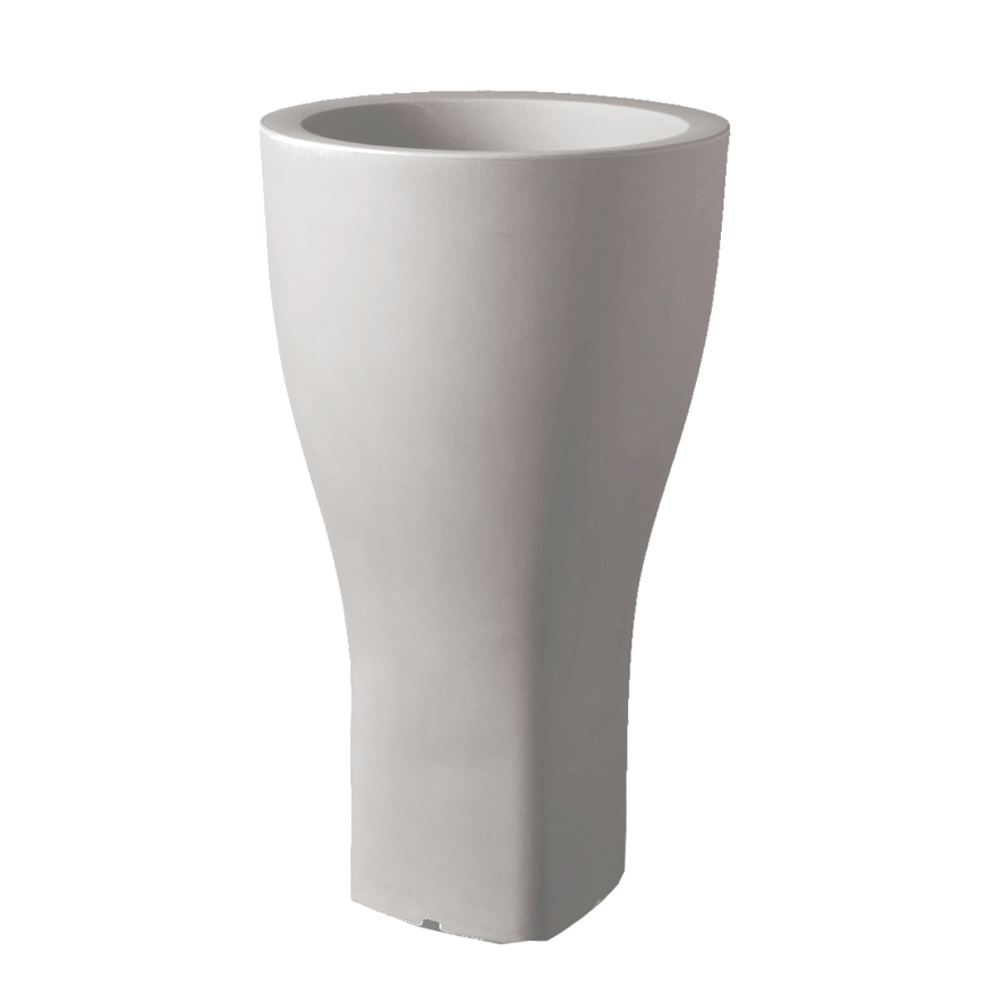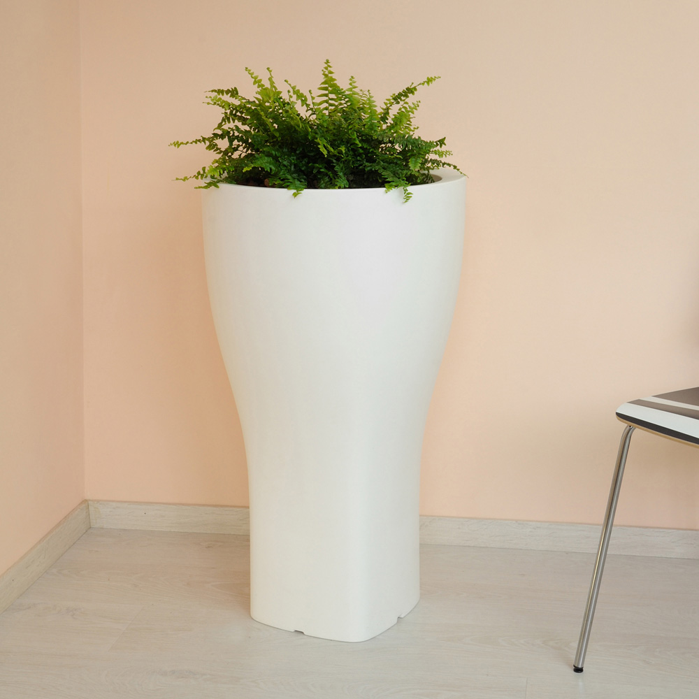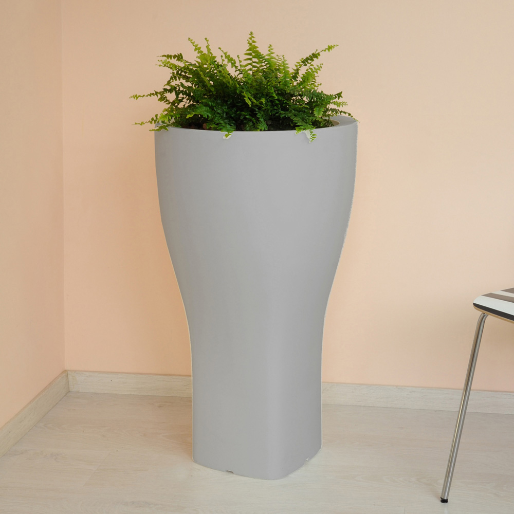 Rund haveurtepotte i farvet polyethylen fås i to forskellige størrelser.