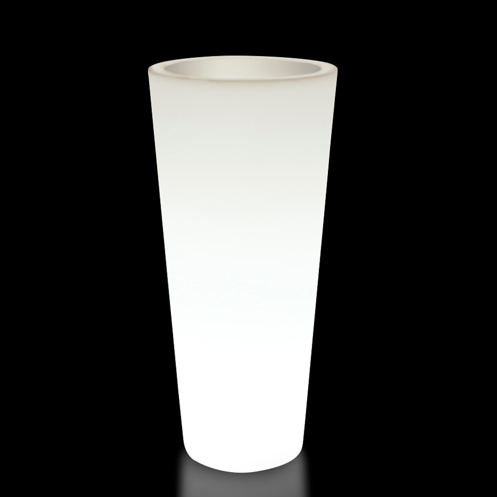 I den perlehvide udgave med lys leveres den oplyste vase med et formonteret belysningssæt: 2,5 meter sort kabel til indendørs og udendørs brug, lampeholder med E27 fitting.