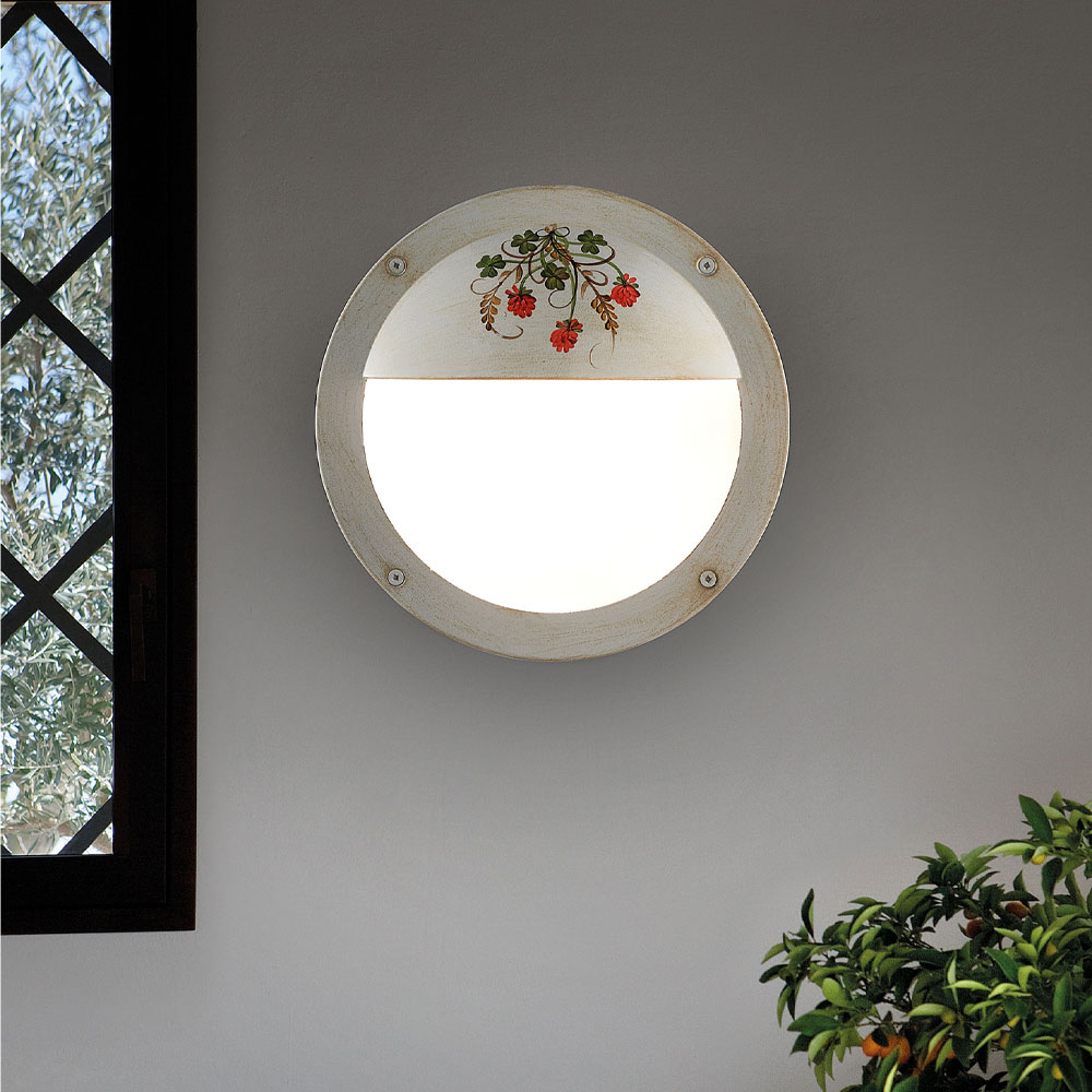 Denne runde havevæglampe er udelukkende lavet af aluminium for en klassisk og harmonisk stil mellem form og farver.