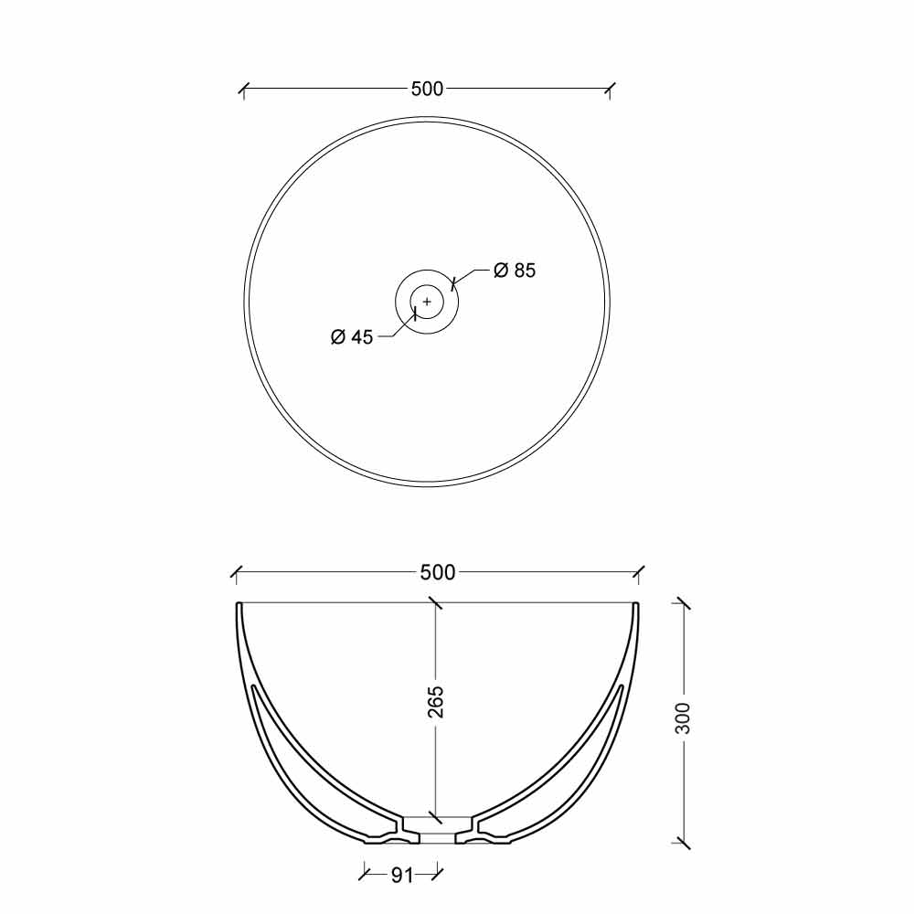 Rund bordplade håndvask i hvid eller farvet keramik Star Round50, fremstillet i Italien