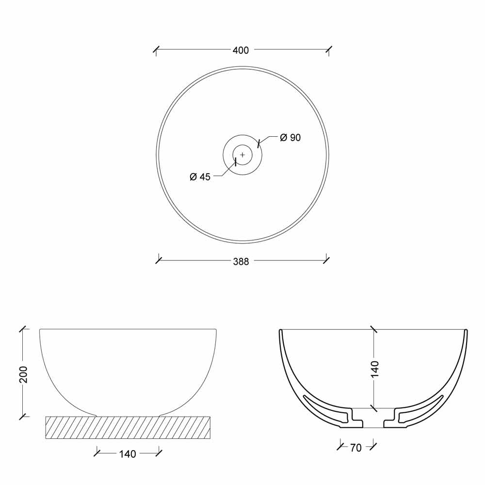 Moderne design keramisk bordplade håndvask Star Round 40 cm, lavet i Italien