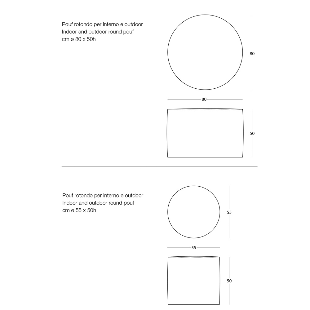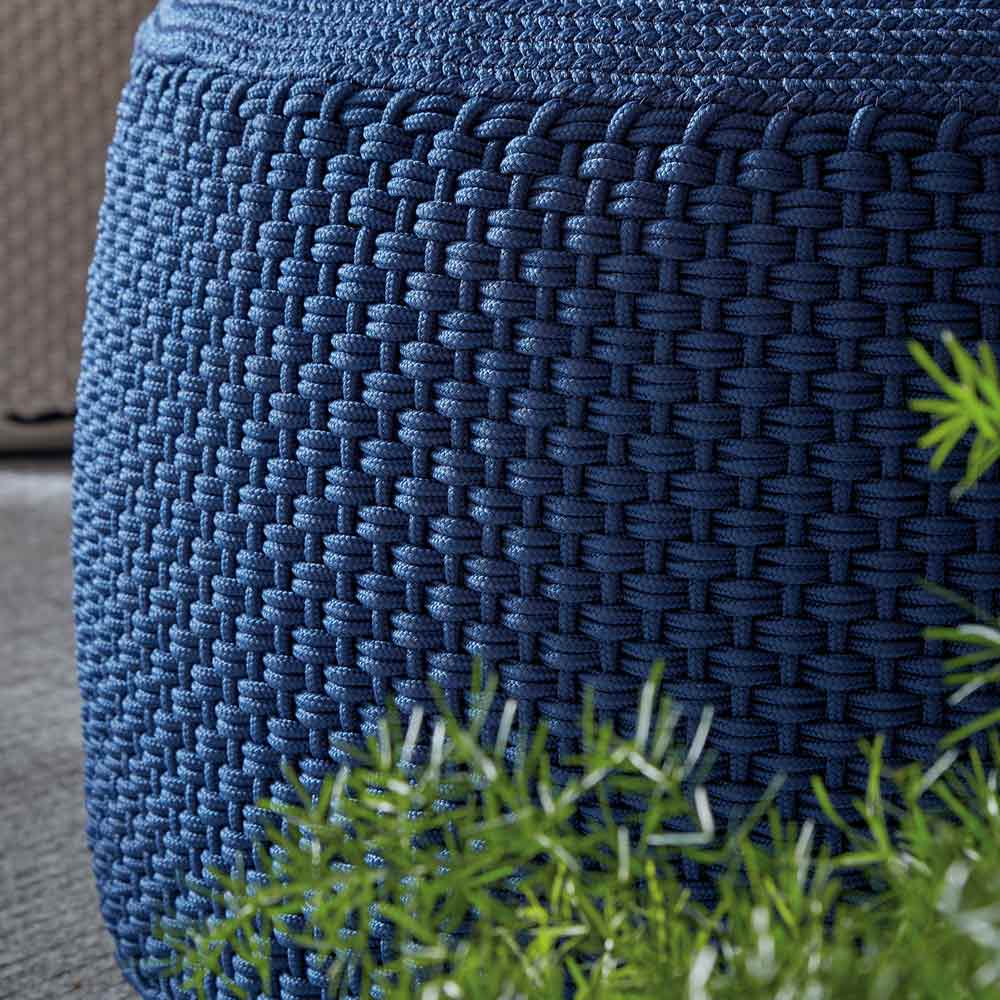 Rund osmannisk puf til indendørs eller udendørs brug i blå, due grå eller hamp polyesterfiber, kvalitetsartikel fremstillet i Italien.