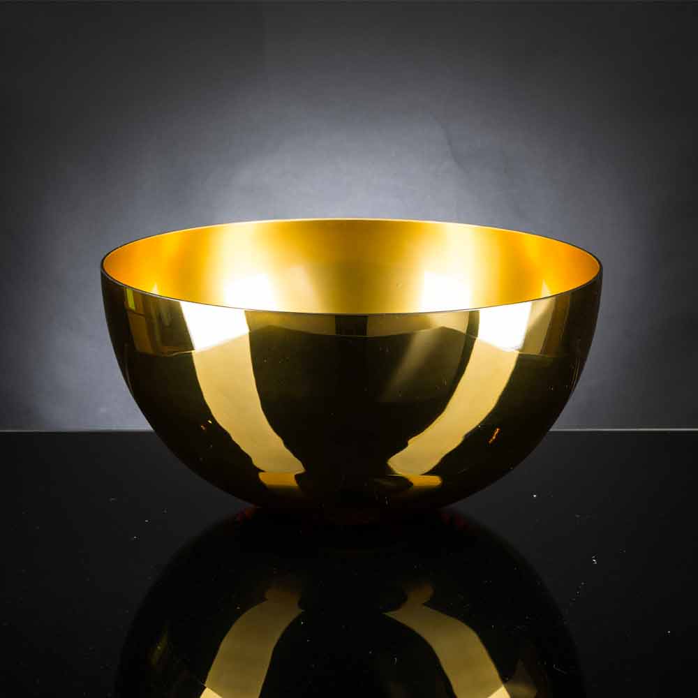 Rund formet dekorativ vase fremstillet i Italien i blæst glas med en blank 24k guldfinish, håndlavet af mesterglasproducenter, der har været eksperter i sektoren i generationer. Dens særegenhed er repræsenteret af den håndværksmæssige produktion, der øger dens værdi og værdi for at give et eksklusivt og højkvalitetsresultat liv. Den valgte farve gør den til et ekstremt elegant supplement, der er i stand til at berige de omgivende møbler med personlighed. Et ideelt design til de mest varierede miljøer, lige fra boligindretning til hoteller, restauranter, kontraktområder, kurbade, men også som ramme om begivenheder og bryllupper.