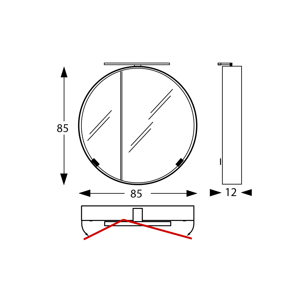 Dette elegante skab er et møbel, der blander stil og brugbarhed . Denne pladsbesparende løsning tilbyder et moderne cirkulært design med to spejldøre, der åbner for at afsløre et rummeligt interiør, ideel til pæn opbevaring af alt dit badeværelsestilbehør.