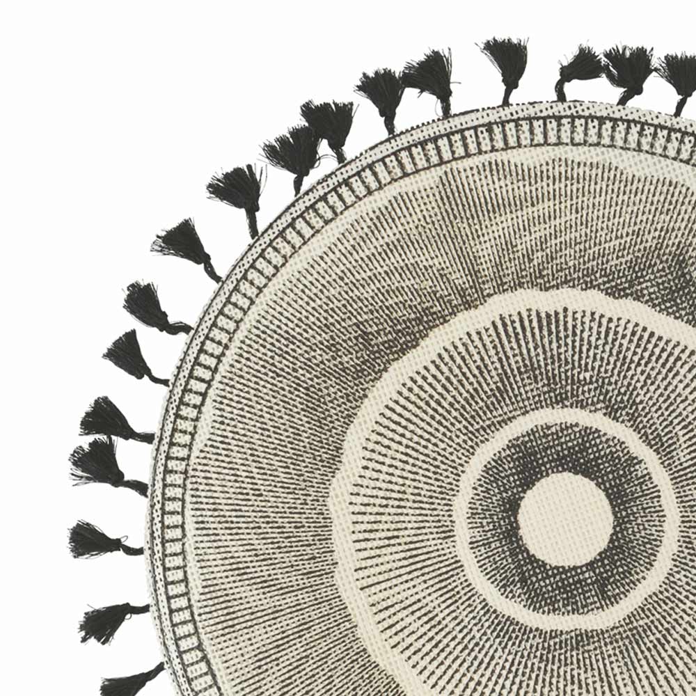 Rundt dækkeserviet sæt i hvid jute dekoreret med sorte frynser, 12 stk.
