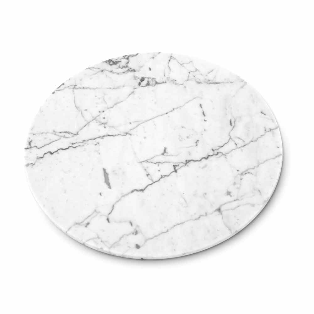 Elegant moderne rund ostetallerken lavet af 2 marmorvarianter: hvid Carrara marmor og sort Marquinia marmor. Lavet af ædel marmor af høj kvalitet , det er et unikt stykke, da hver brugt marmorblok adskiller sig fra de andre i vener og nuancer.