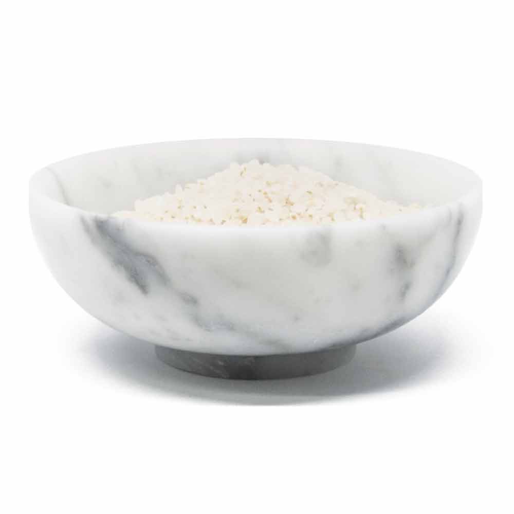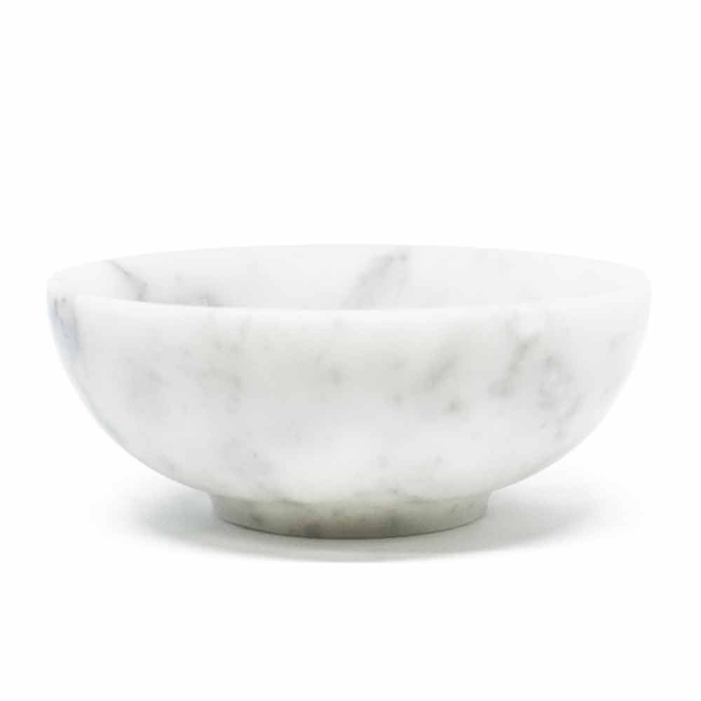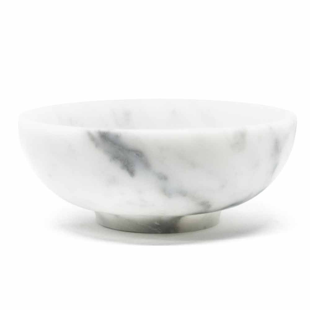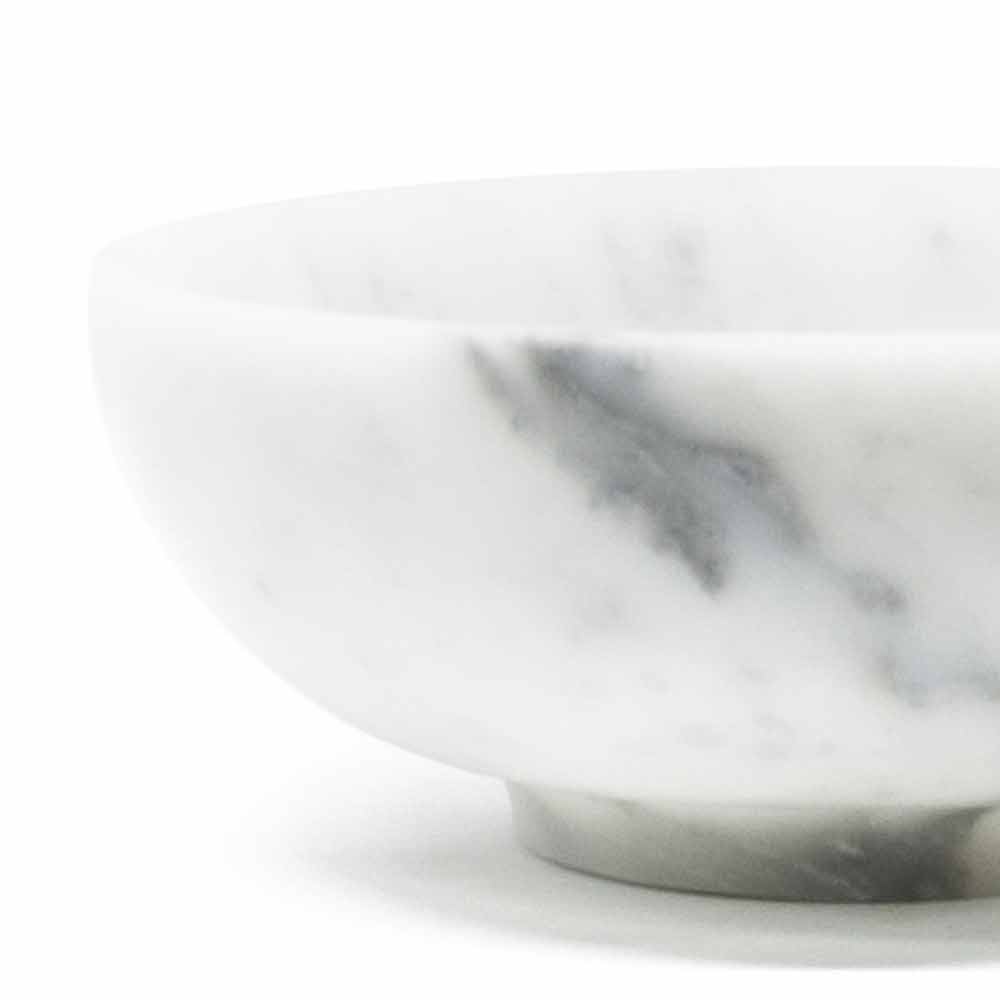 Rund designskål lavet af satinhvid Carrara marmor Made in Italy.