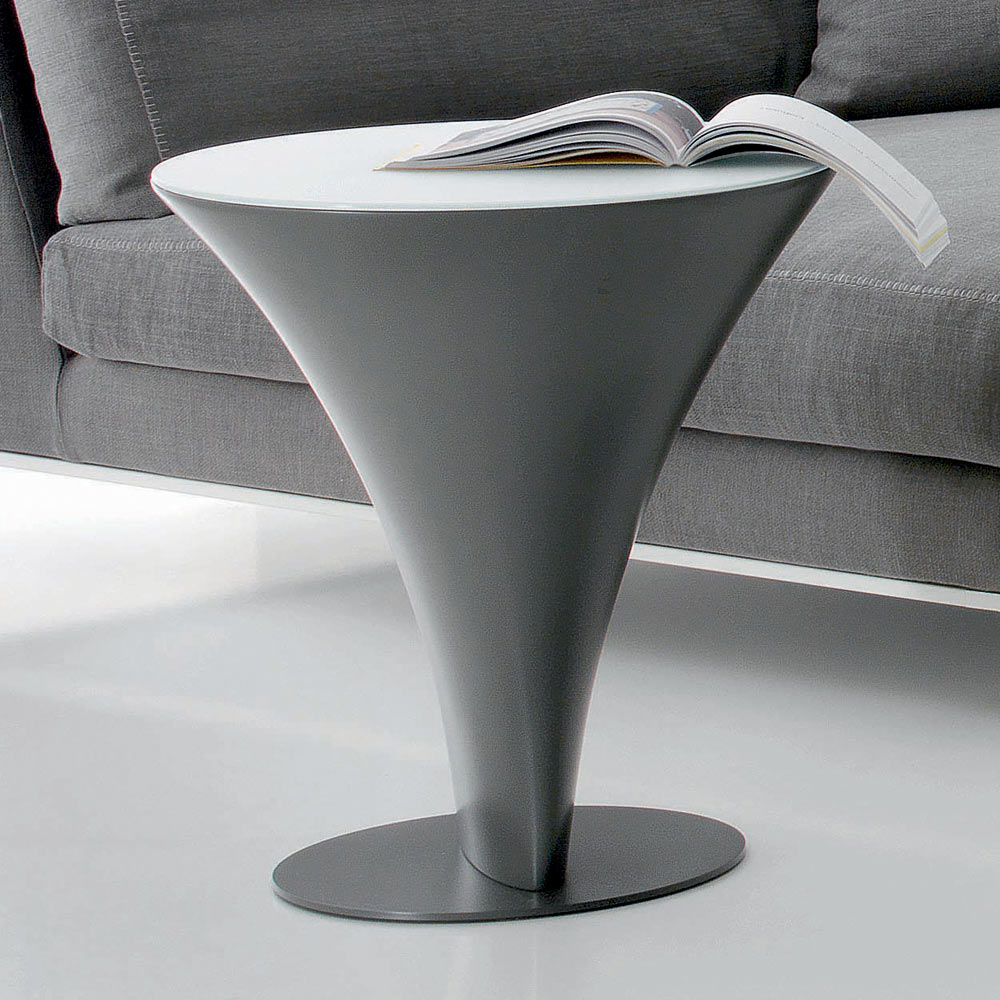 Rundt sofabord i metal og glasplade, forskellige finish fremstillet i Italien.