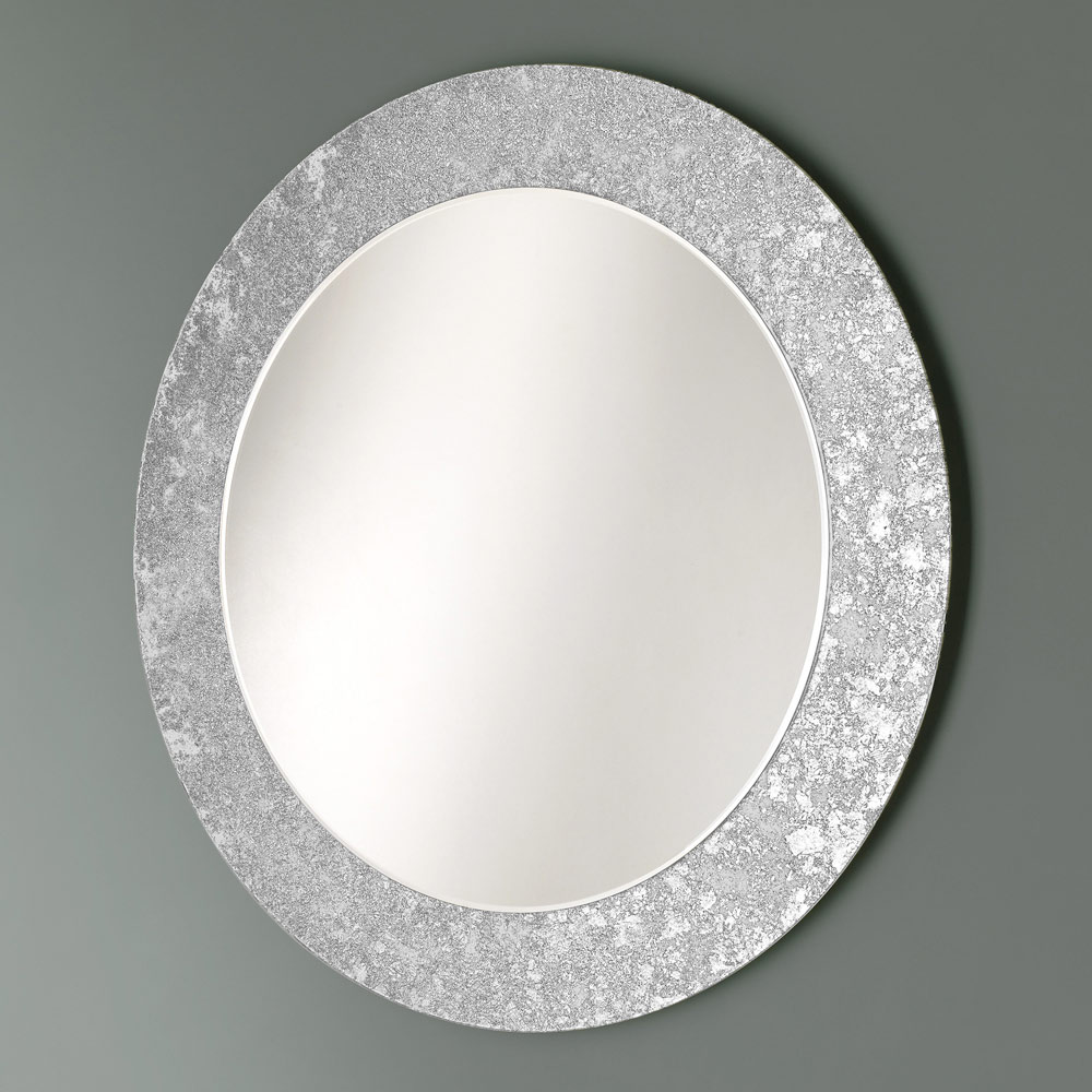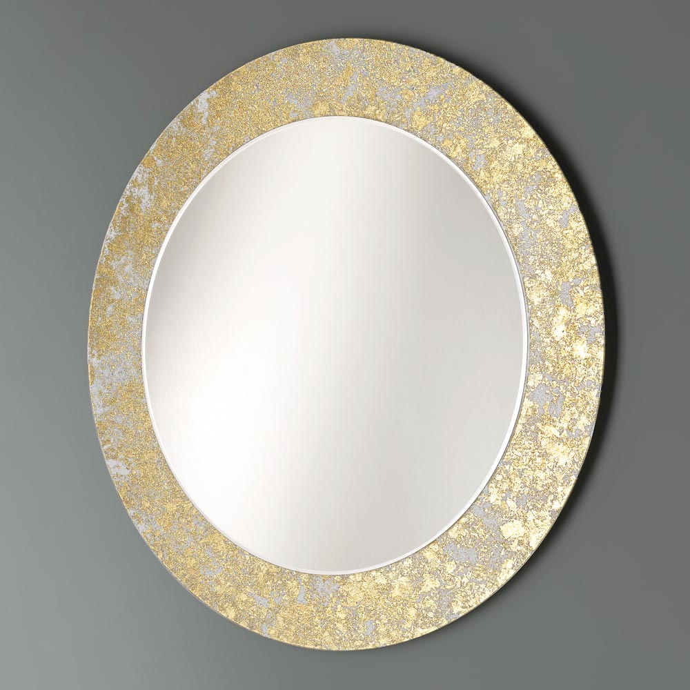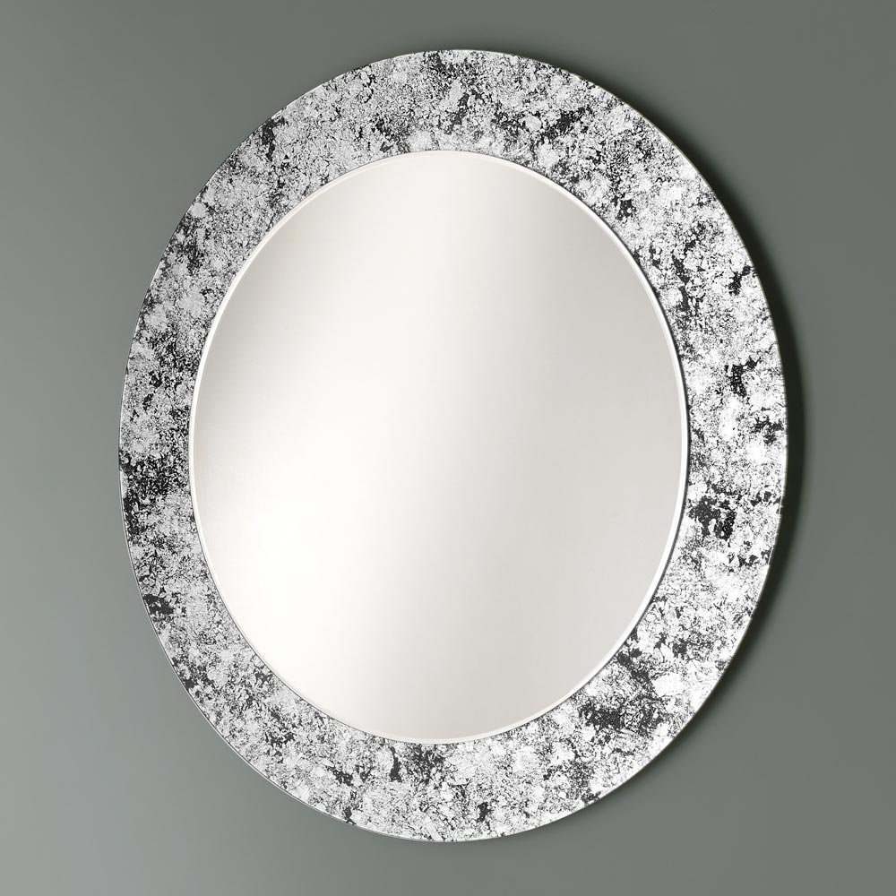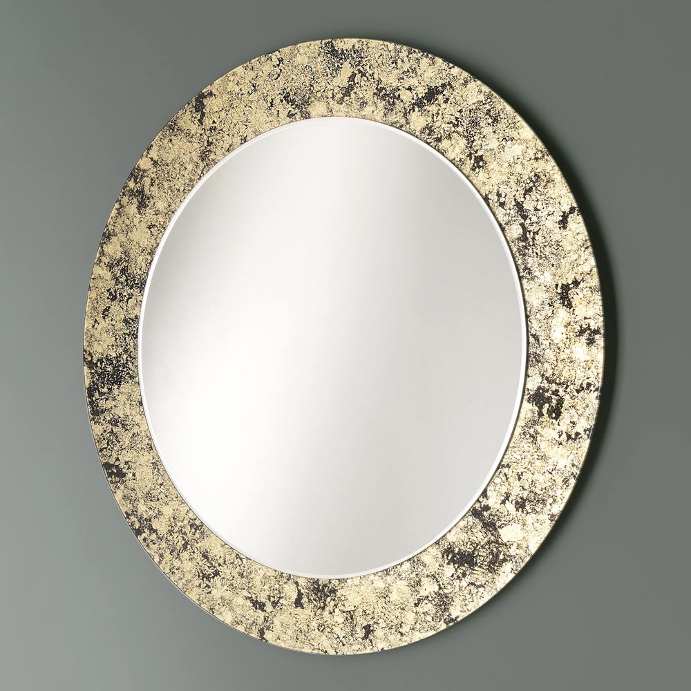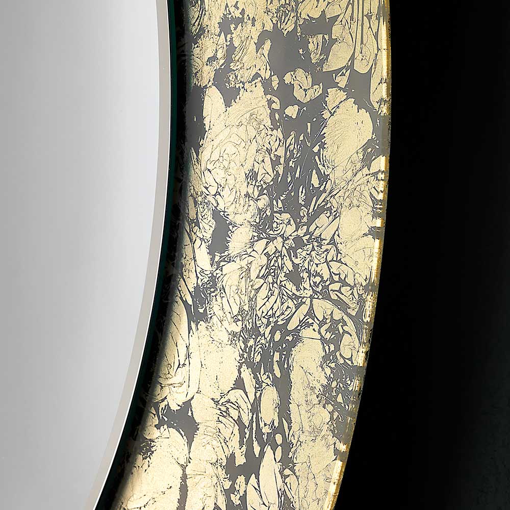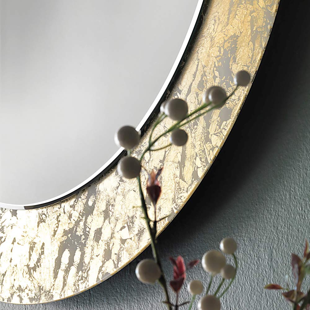 Runt dekorativt vægspejl med bladdekoreret glasramme 4 finish fremstillet i Italien.