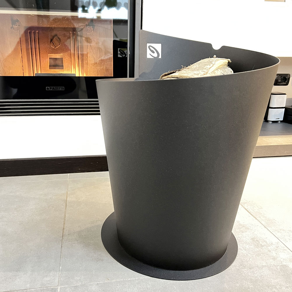 Rund bjælkeholder med moderne og minimalistisk design til indendørs pejs i sort stål, fremstillet i Italien.