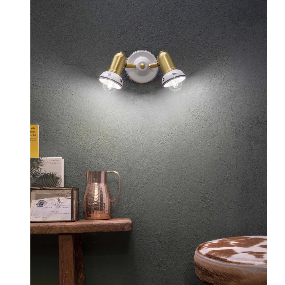 Rund væglampe 2 lys i messing og håndmalet keramik, lavet i Italien af Ferroluce.