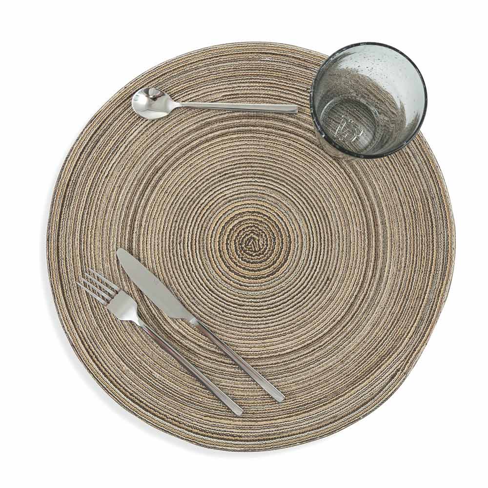 Rund morgenmad dækkeserviet i jute med sorte frynser 12 stykker - Casside
