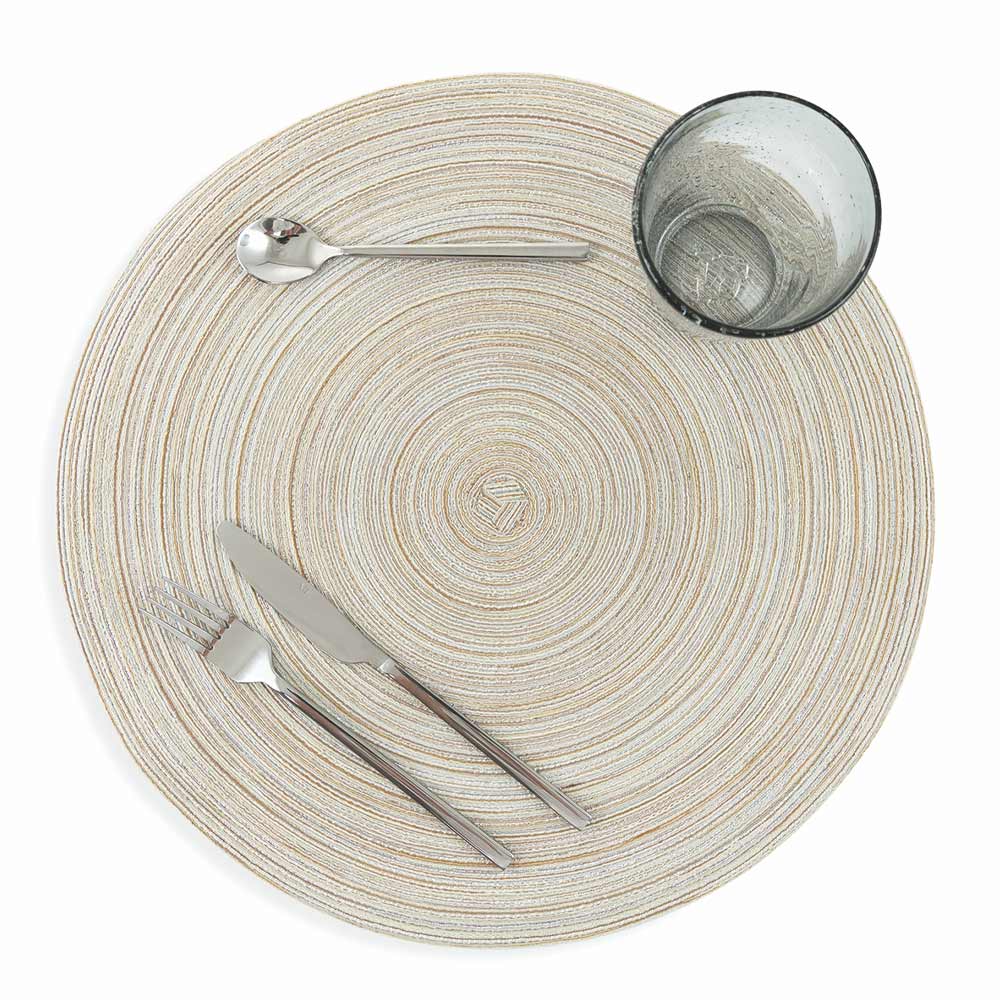 Rundt dækkeserviet sæt i hvid eller brun polyester, 12 stk.