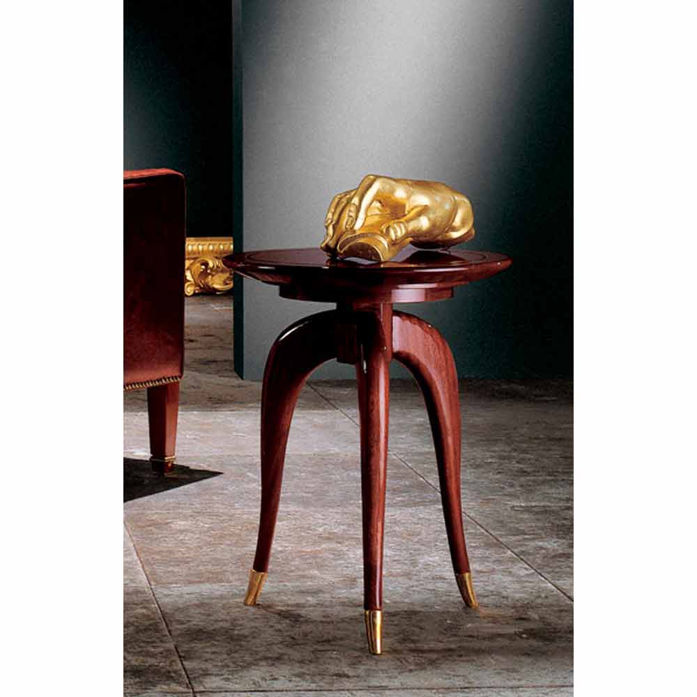 Rundt bord med tre ben. Færdig i naturlig poleret mahogni.