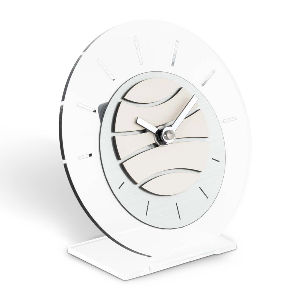 Bordur lavet af gennemsigtigt methacrylat med høj densitet og renhed , udskæring af bunden og urskiven opnået med højteknologisk værktøj, helt lavet i Italien.