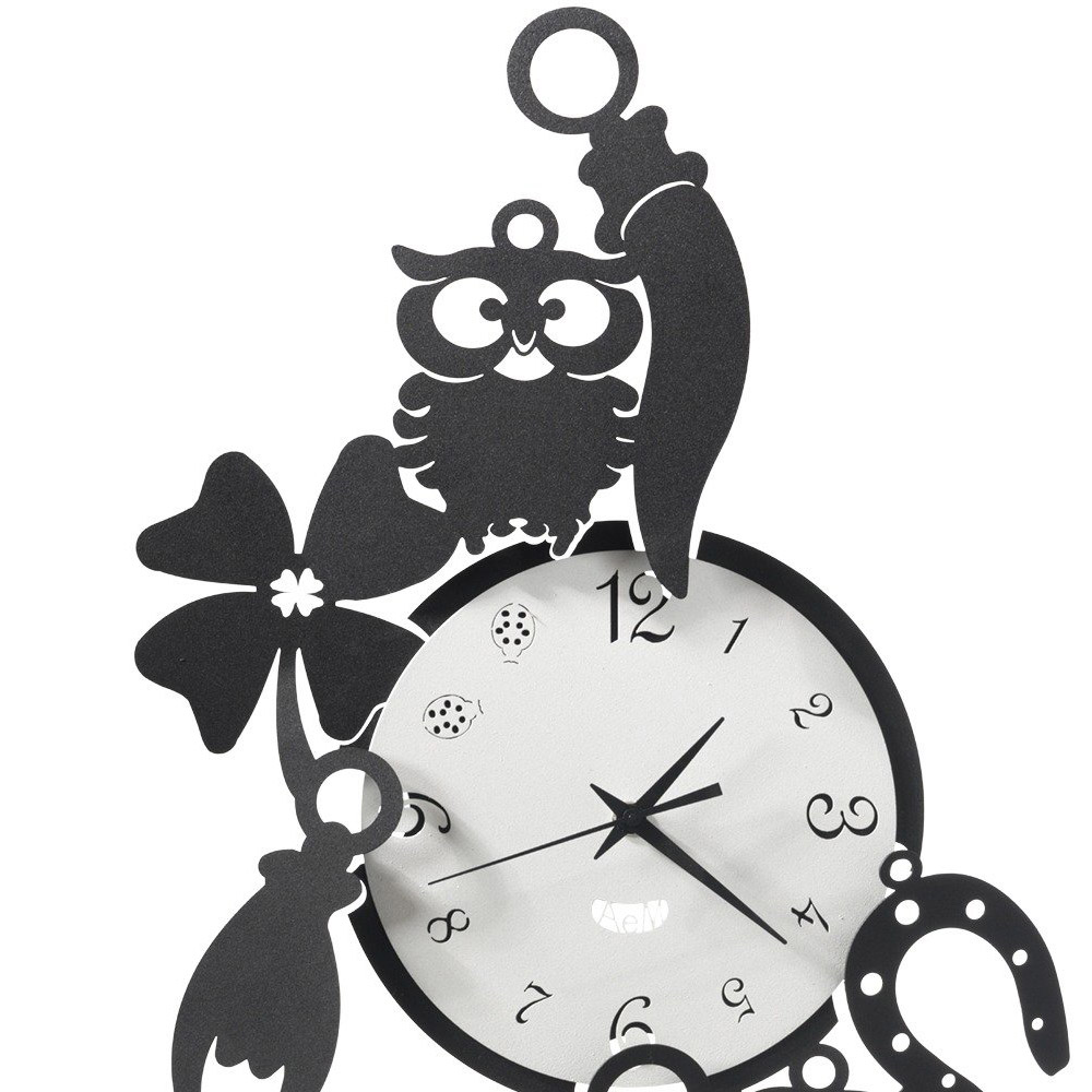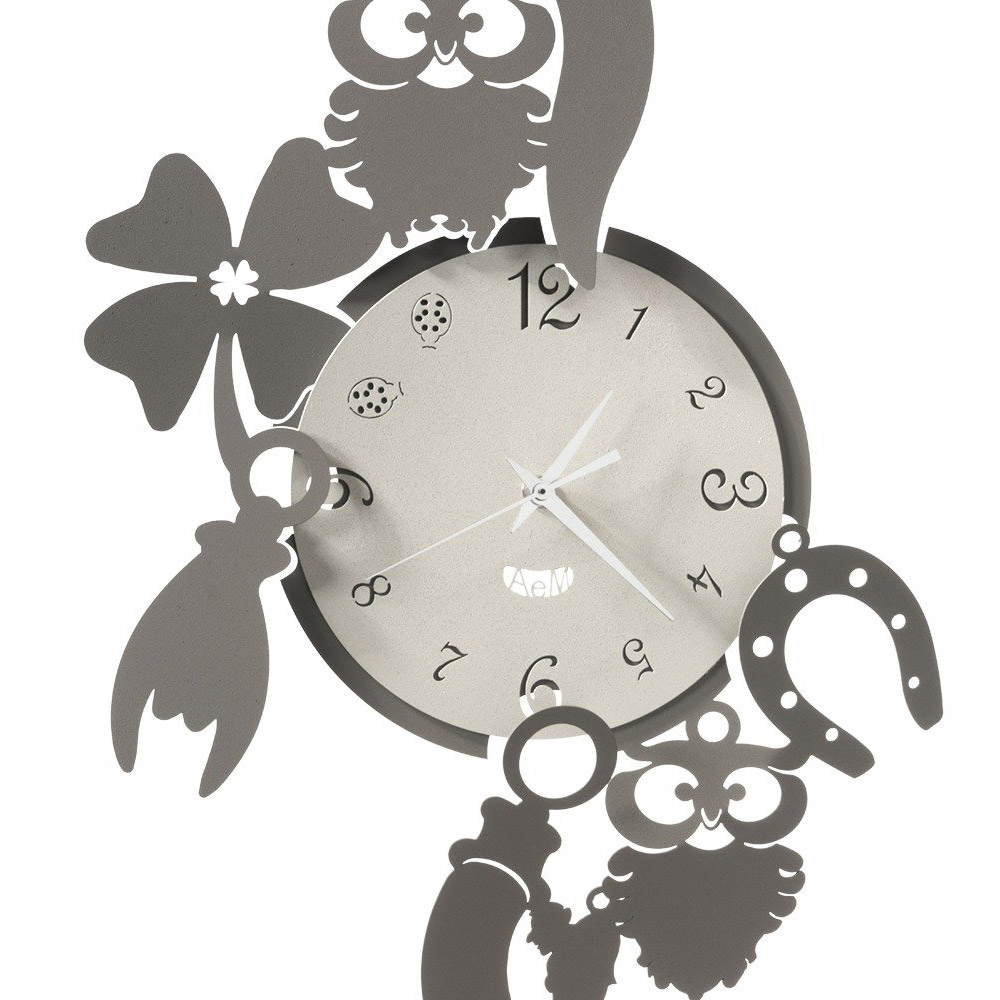 Rundt design vægur i jern med lykkeamuler i 3 finish lavet i Italien.