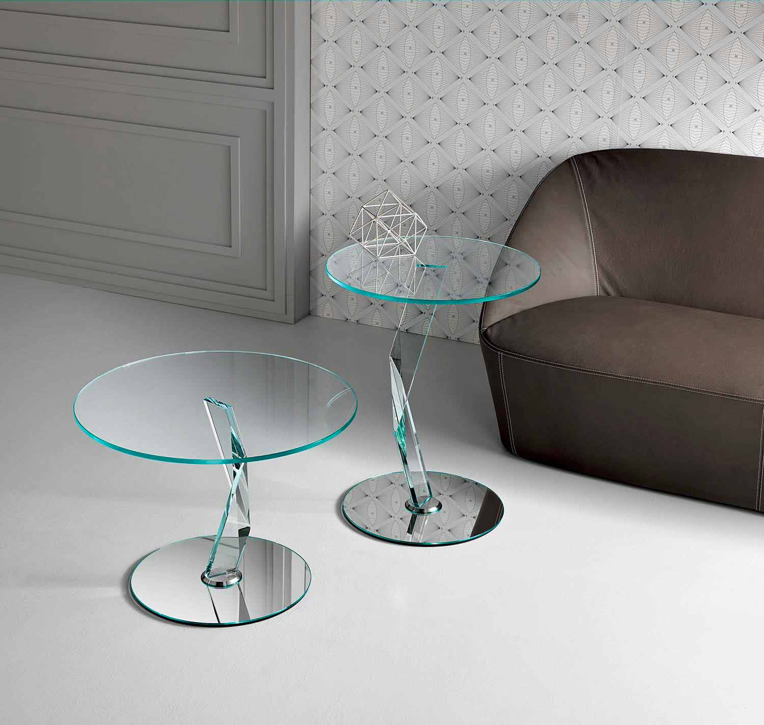 Rundt sofabord med ekstra klar glasplade og metalbund og spejl, håndlavet i Italien.