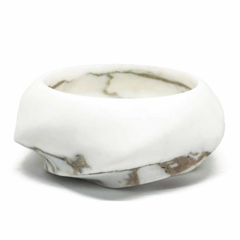Rund bakke helt lavet af arabesk marmor, en række fin hvid marmor med mørkegrå vener, kaldet "arabesker".