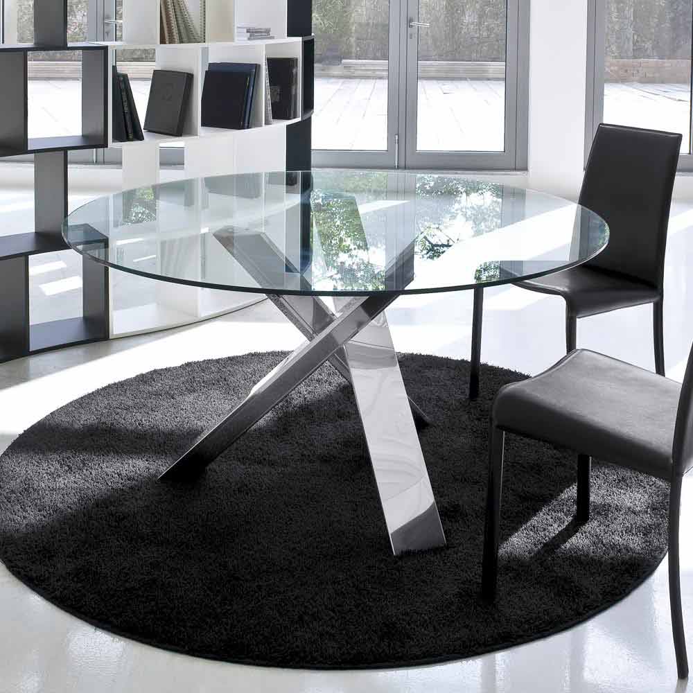 Rundt designbord D 130 glasplade lavet i Italien Cristal