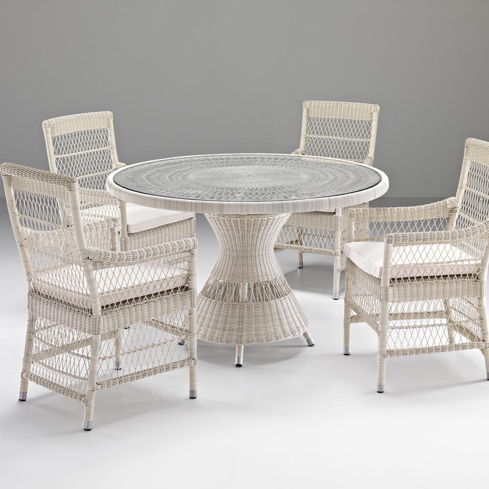 Sammensætning af rundt bord med 4 lænestole i polyrattan
