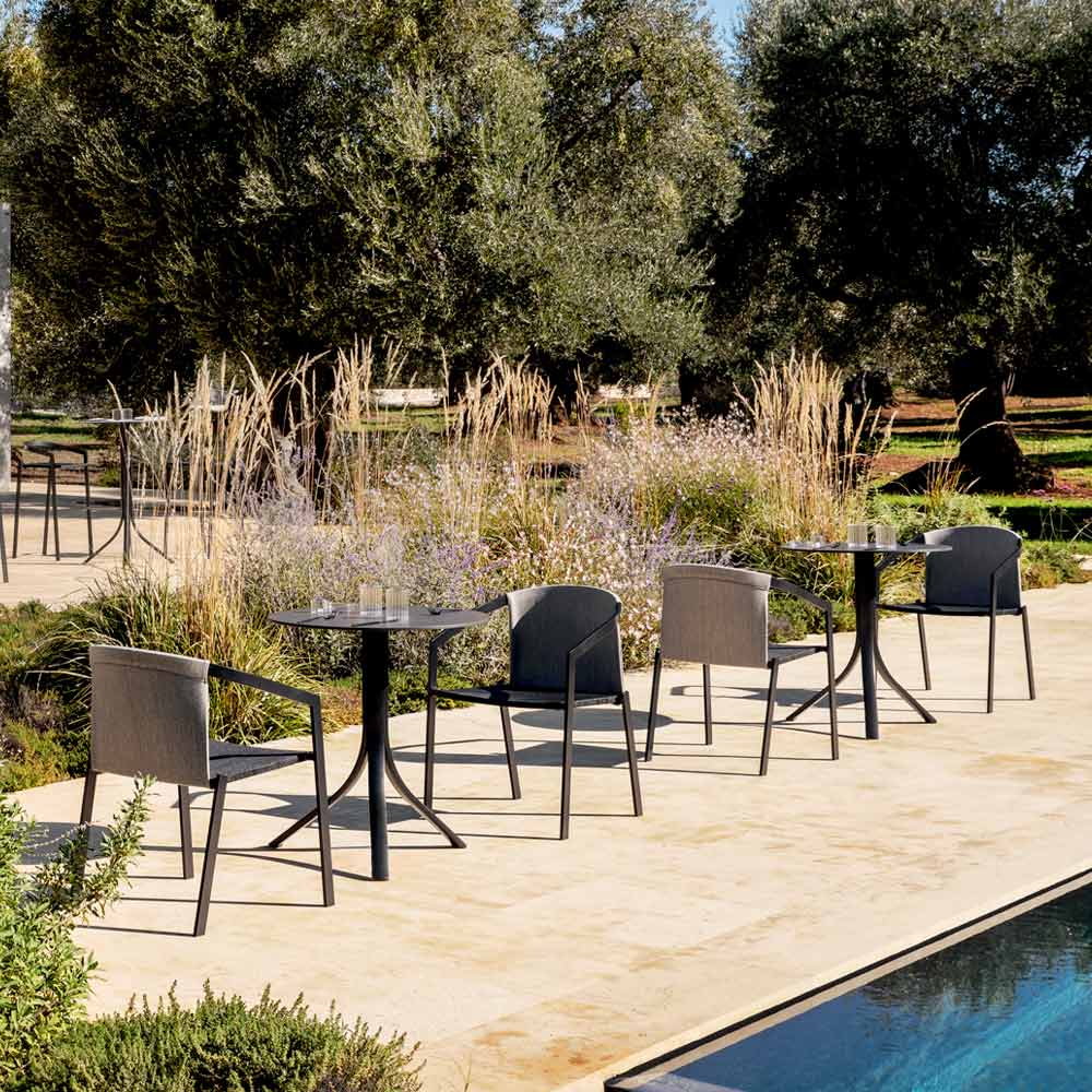 Samlingen er kendetegnet ved detaljerne i aluminiumsbenet som et knudepunkt kombineret med formel strenghed for at opleve det udendørs med hensyn til maksimal afslapning og hygge, siddende i sofaen, omkring et bord eller liggende på solsenge.
