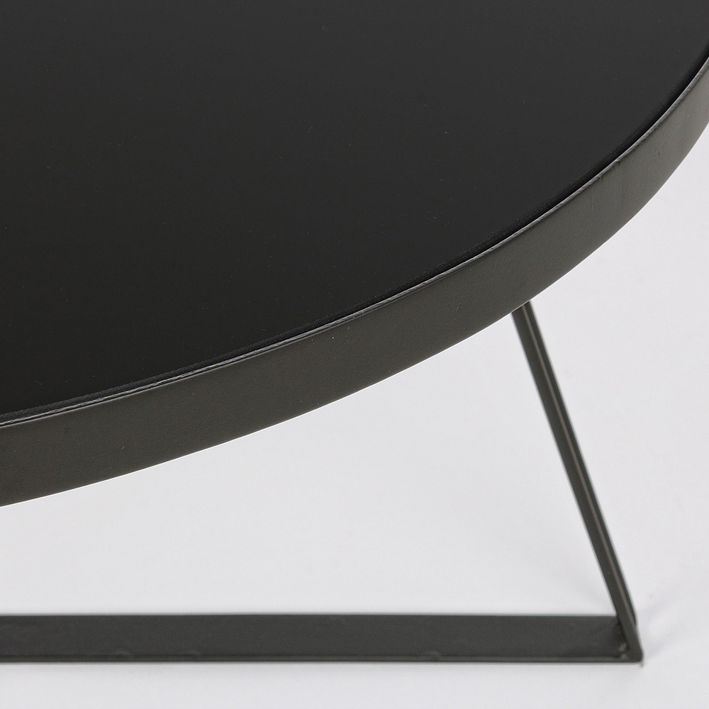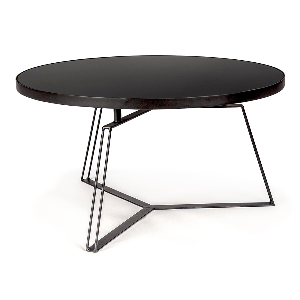 Rundt sofabord i sort stål og glasplade, 2 størrelser.