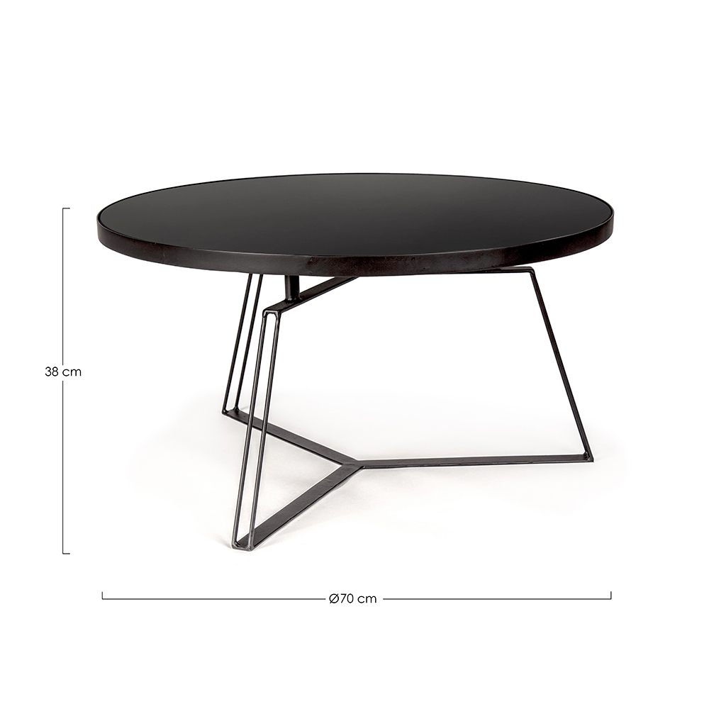 Rundt sofabord i sort stål og glas Top 2 størrelser - Zanzino
