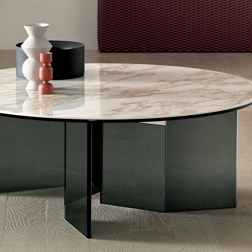 Lavet af røget glas til bunden og en poleret arabesk calacatta keramisk top , det er et møbel, der er håndlavet i Italien med materialer af høj kvalitet, der er ideelle til opholdsområdet.