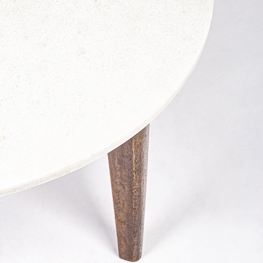 Rundt sofabord til stue i marmor og mangotræ - Desiderio