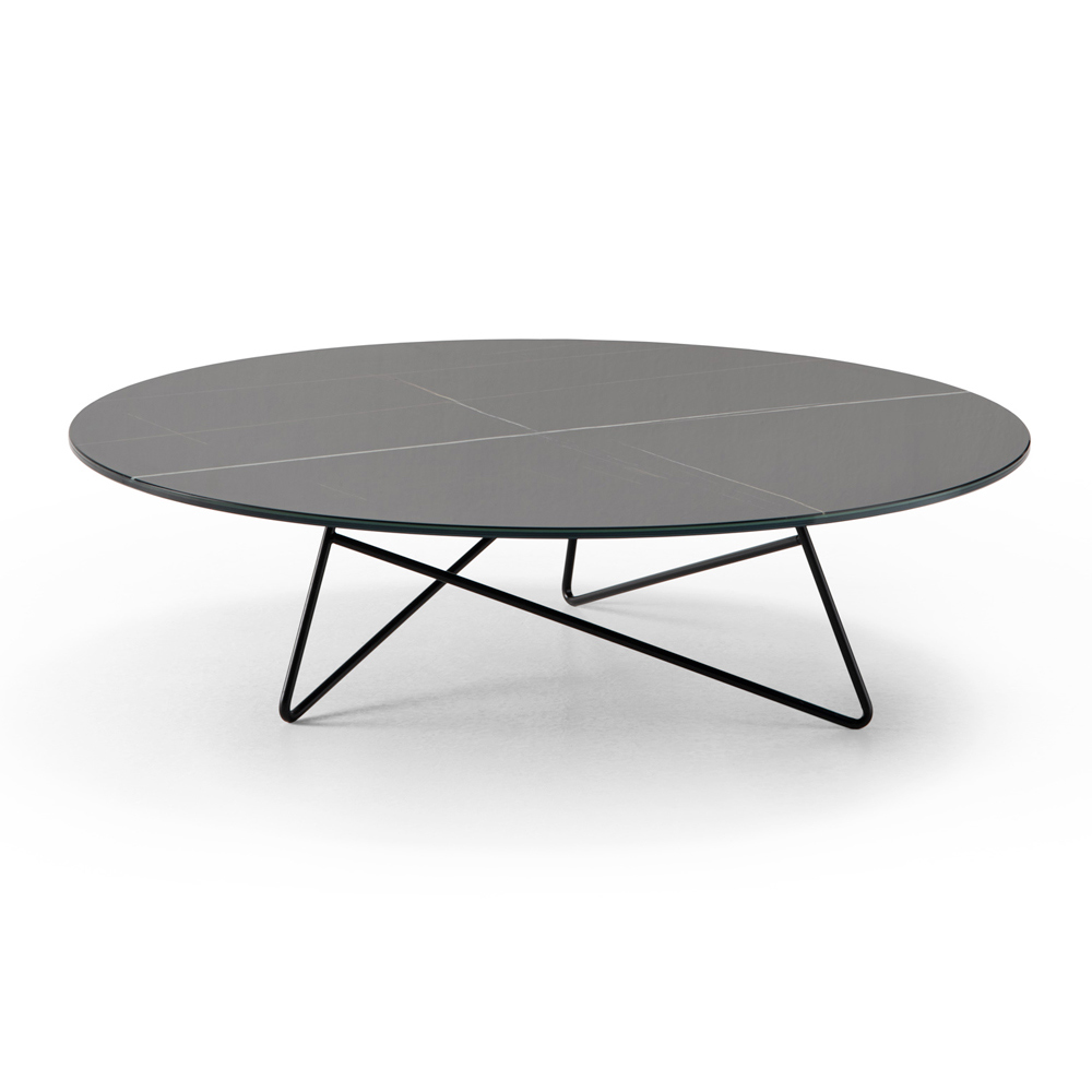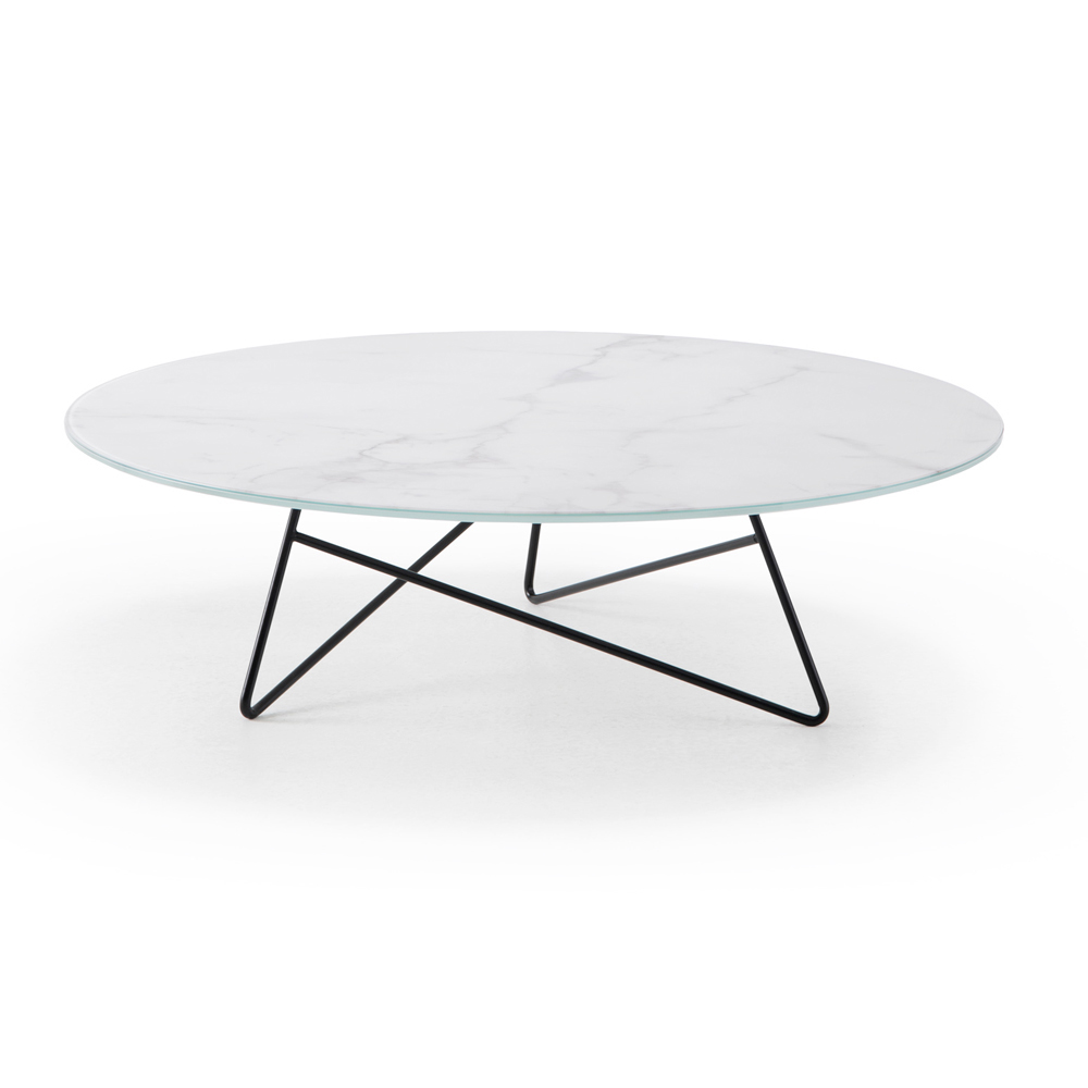 Lavt sofabord med rund glasmarmorplade, luksusartikler lavet i Italien.