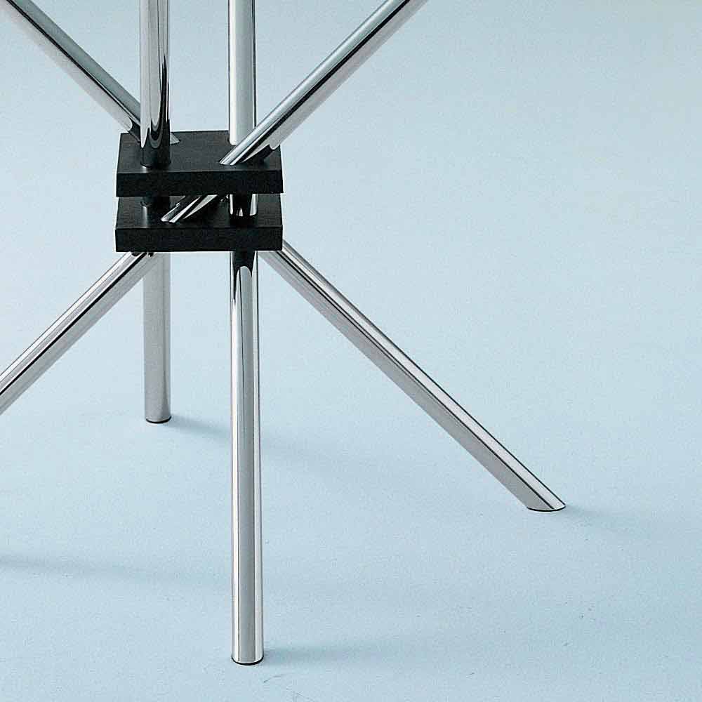 Spisebord med rund glasplade og stålfod Fremstillet i Italien.